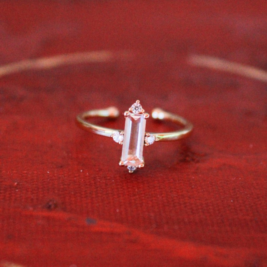 Anello regolabile in argento 925 placcato Oro 18k con baguette zircone bianco e punti luce.