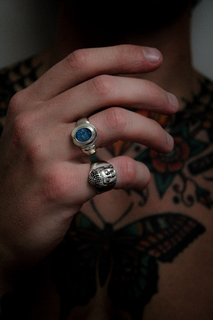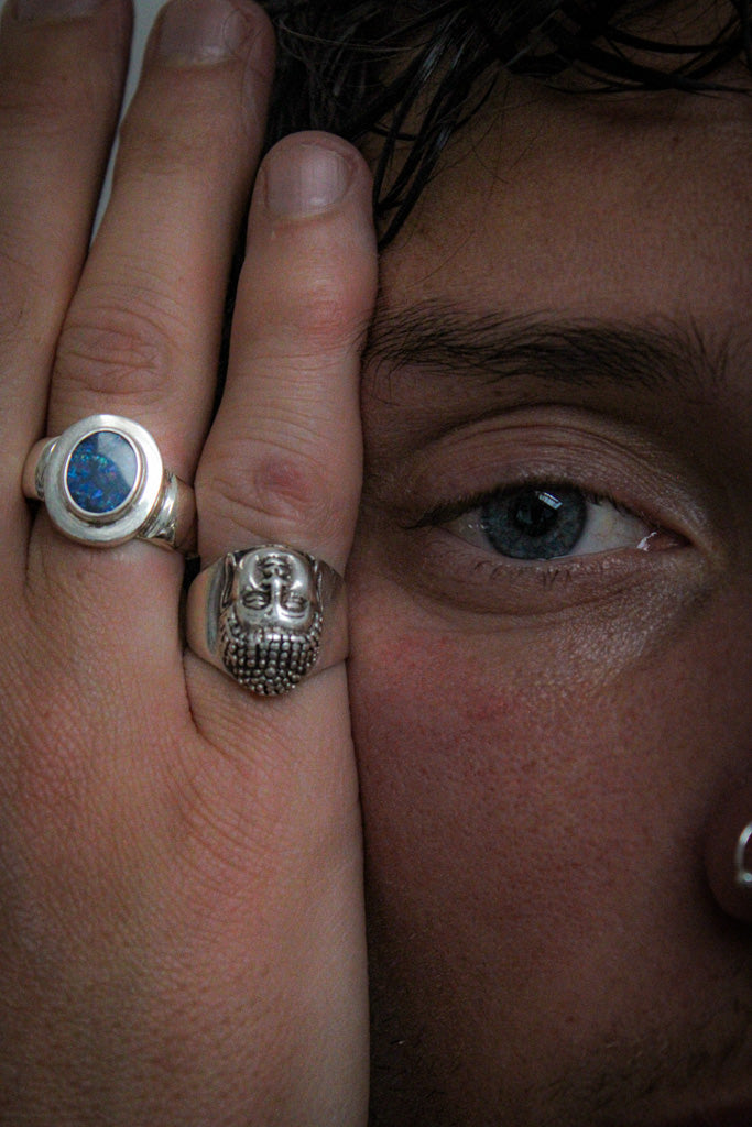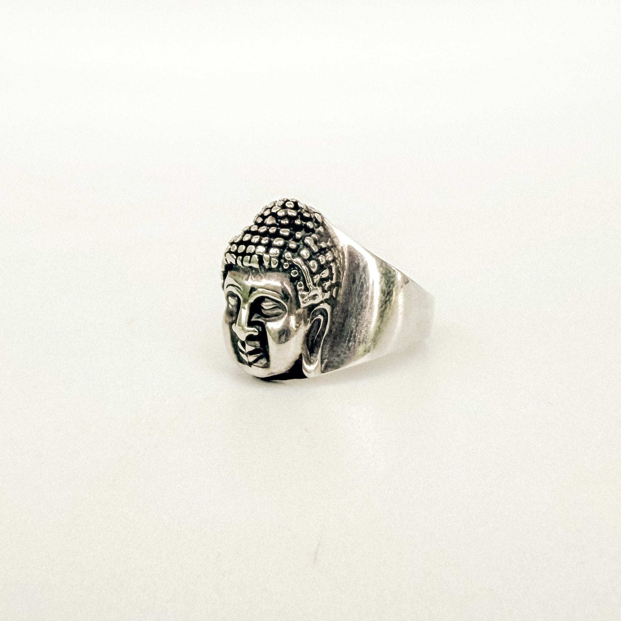 Anello uomo in Argento 925 fatto a mano, regolabile con design testa di Buddha.