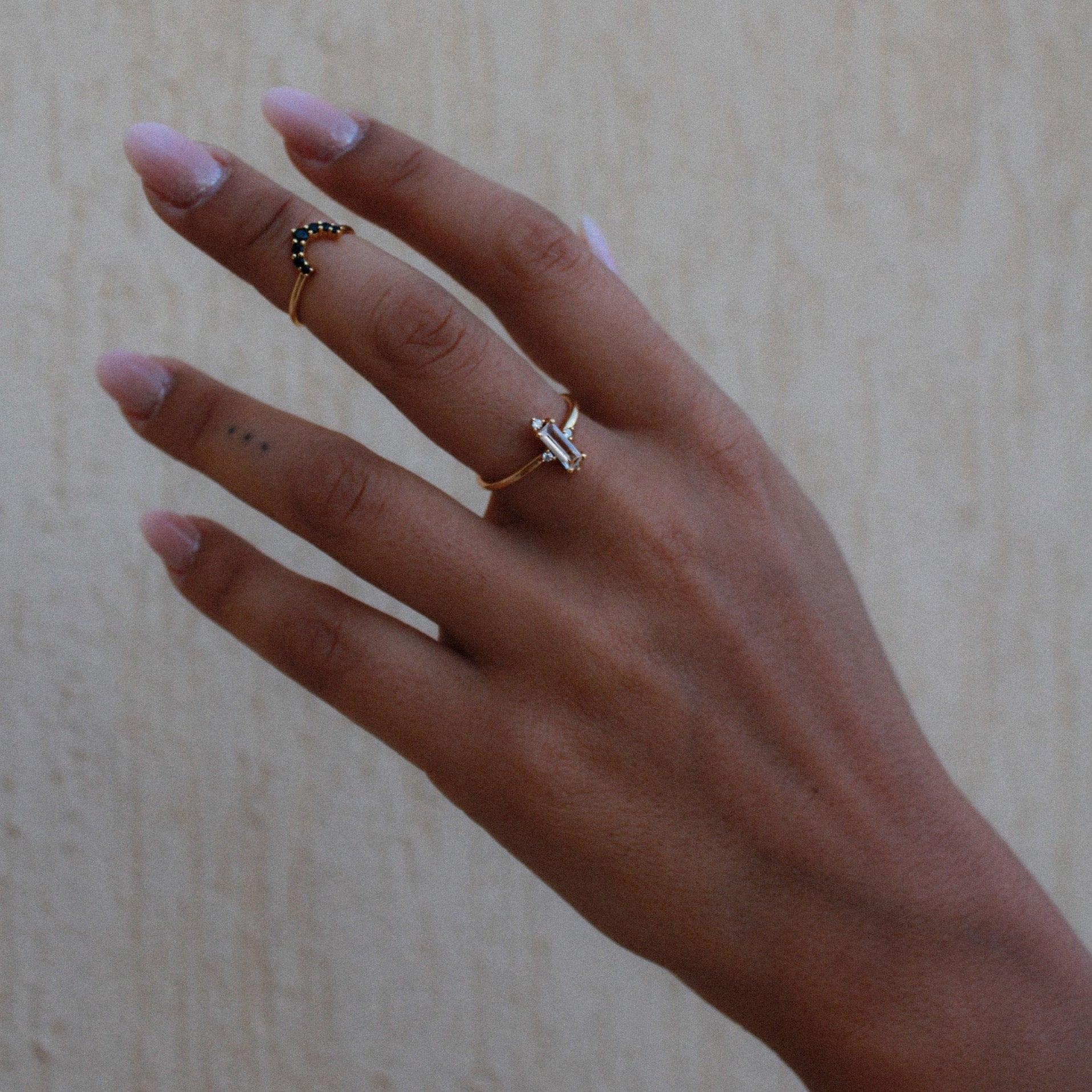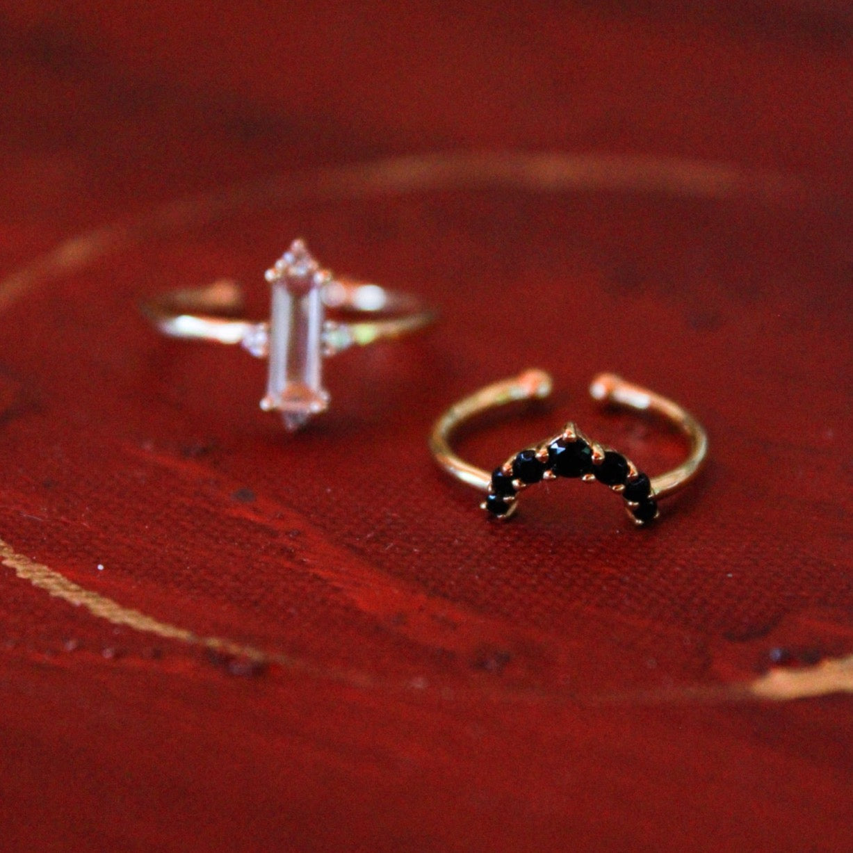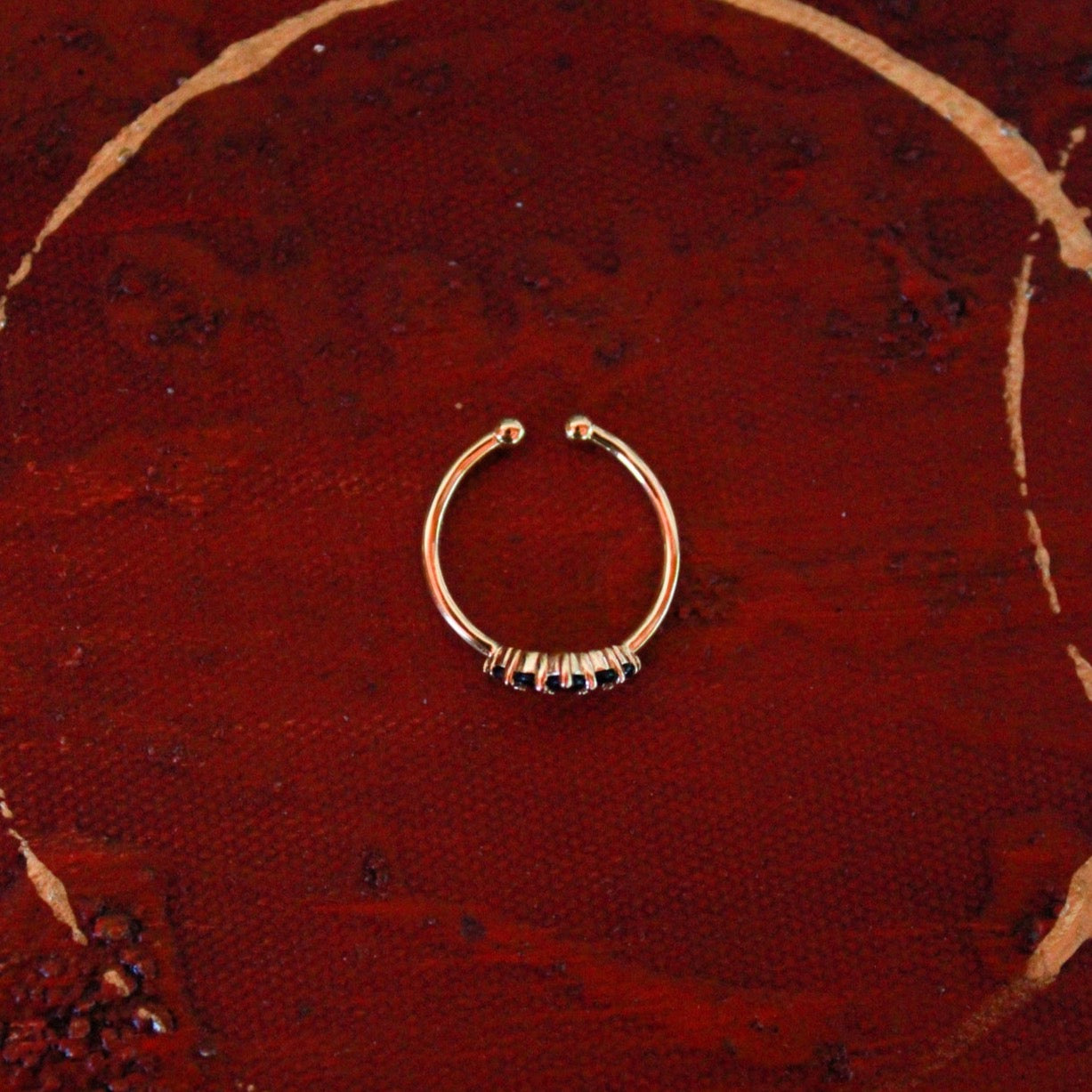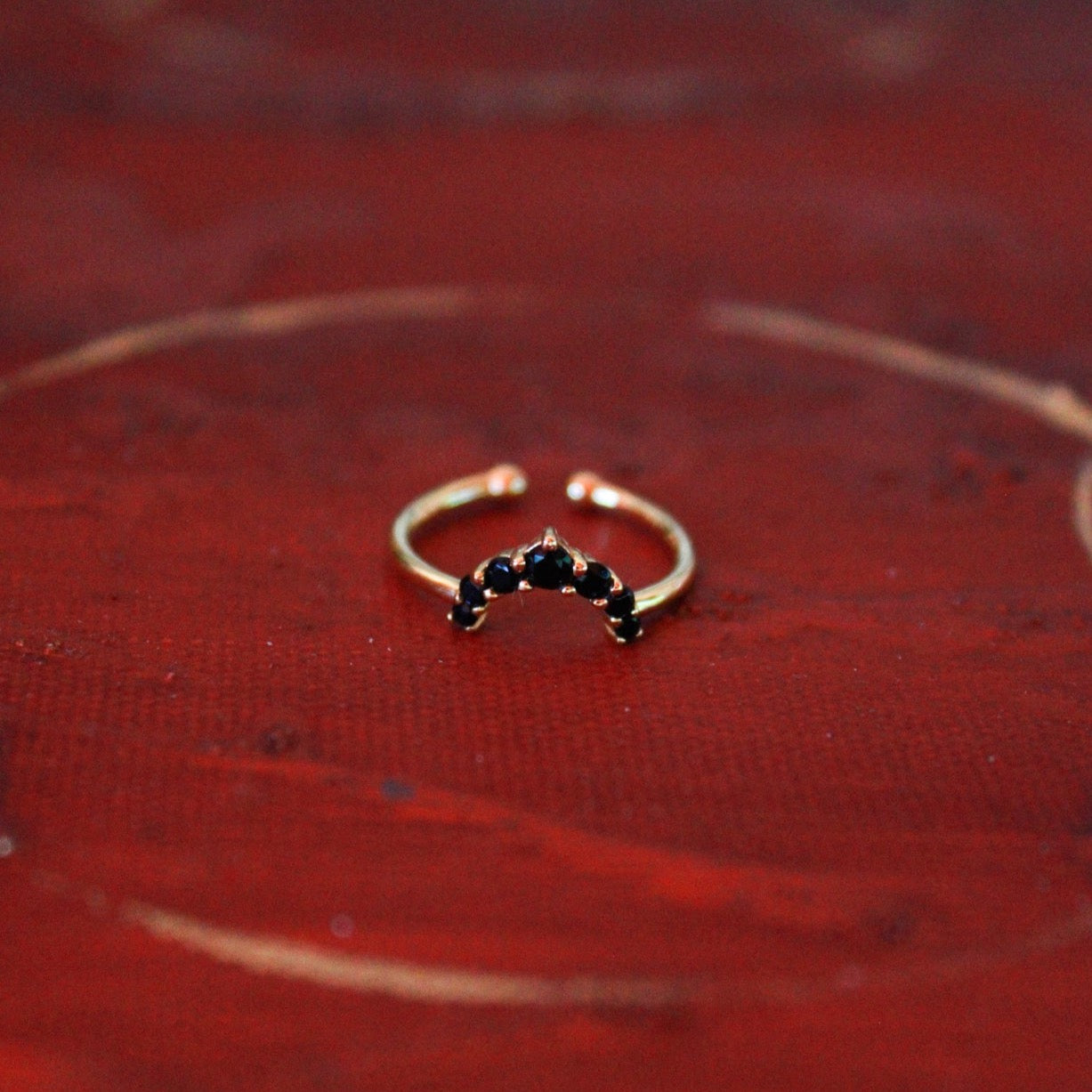 Anello regolabile mezzo dito in argento 925 placcato Oro 18k con zirconi neri.