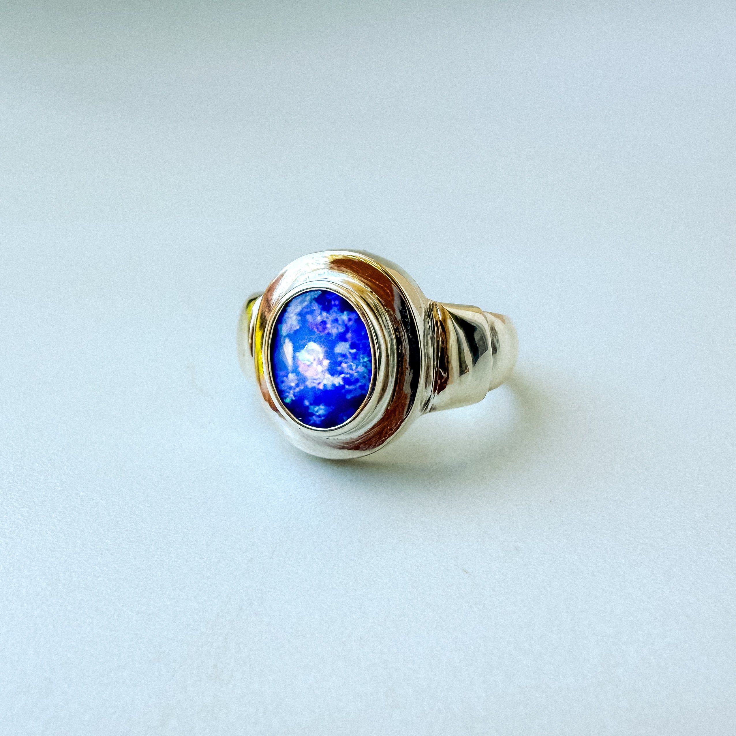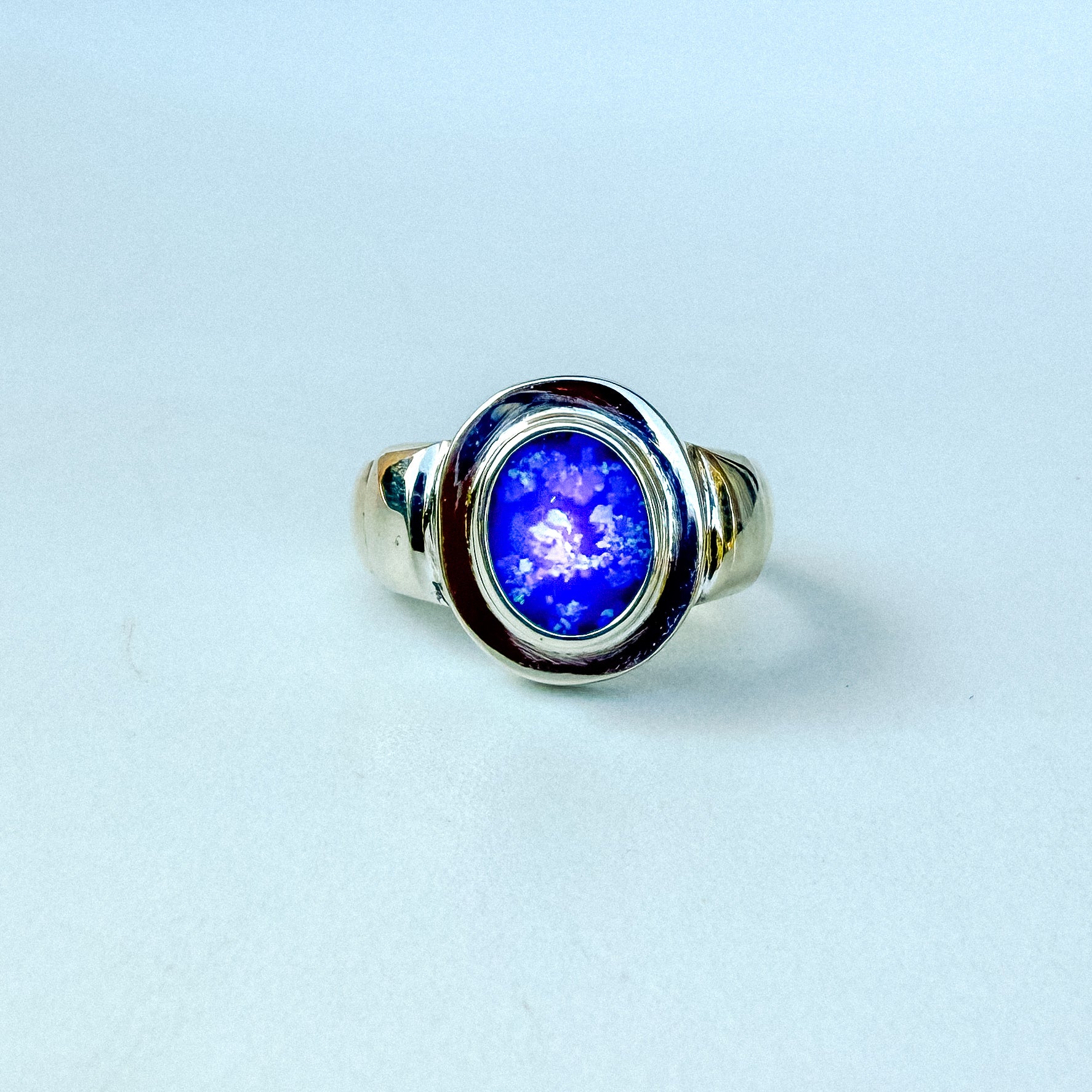 Anello uomo in Argento 925 fatto a mano, regolabile con gemma di opale australiano cabochon