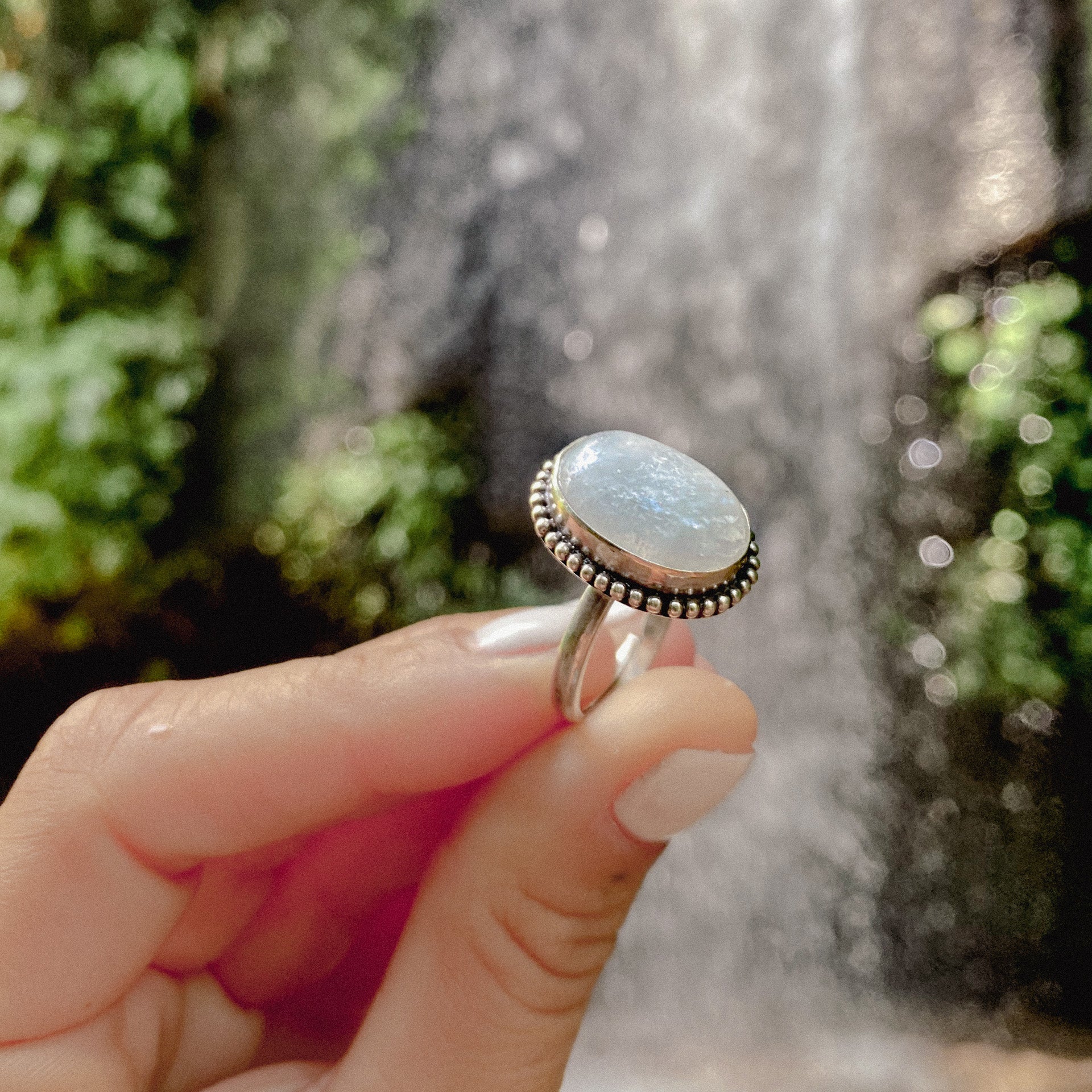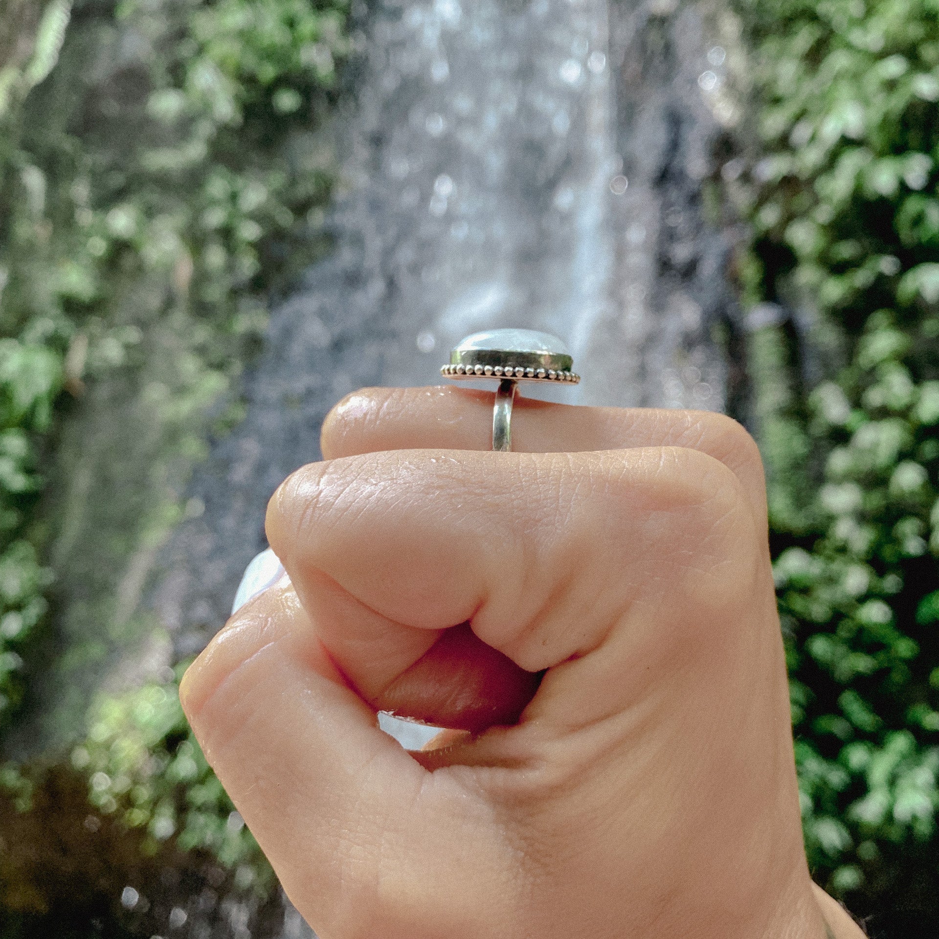 Anello Rugiada - una goccia d’acqua in pietra di luna