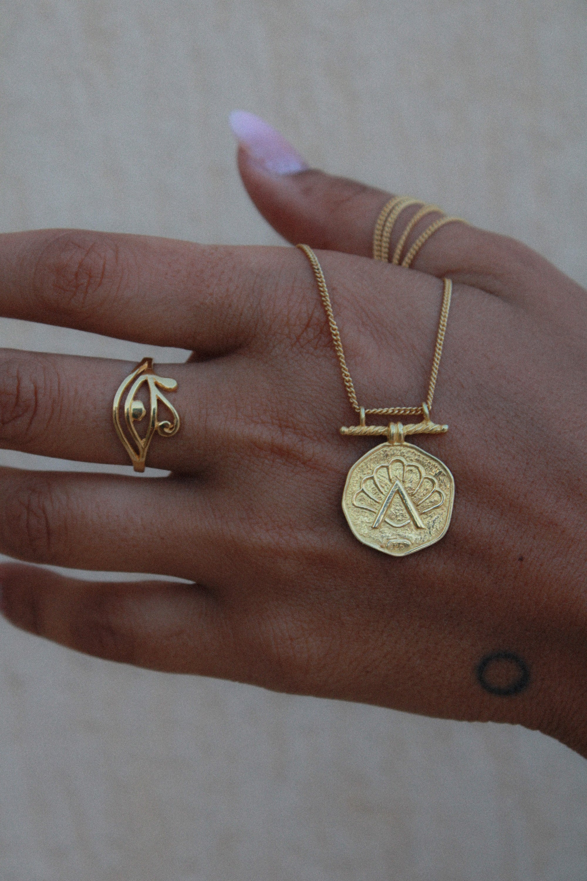 Collana in Argento 925 placcata Oro 18k con pendente double-face occhio di Horus e logo Atlantica.