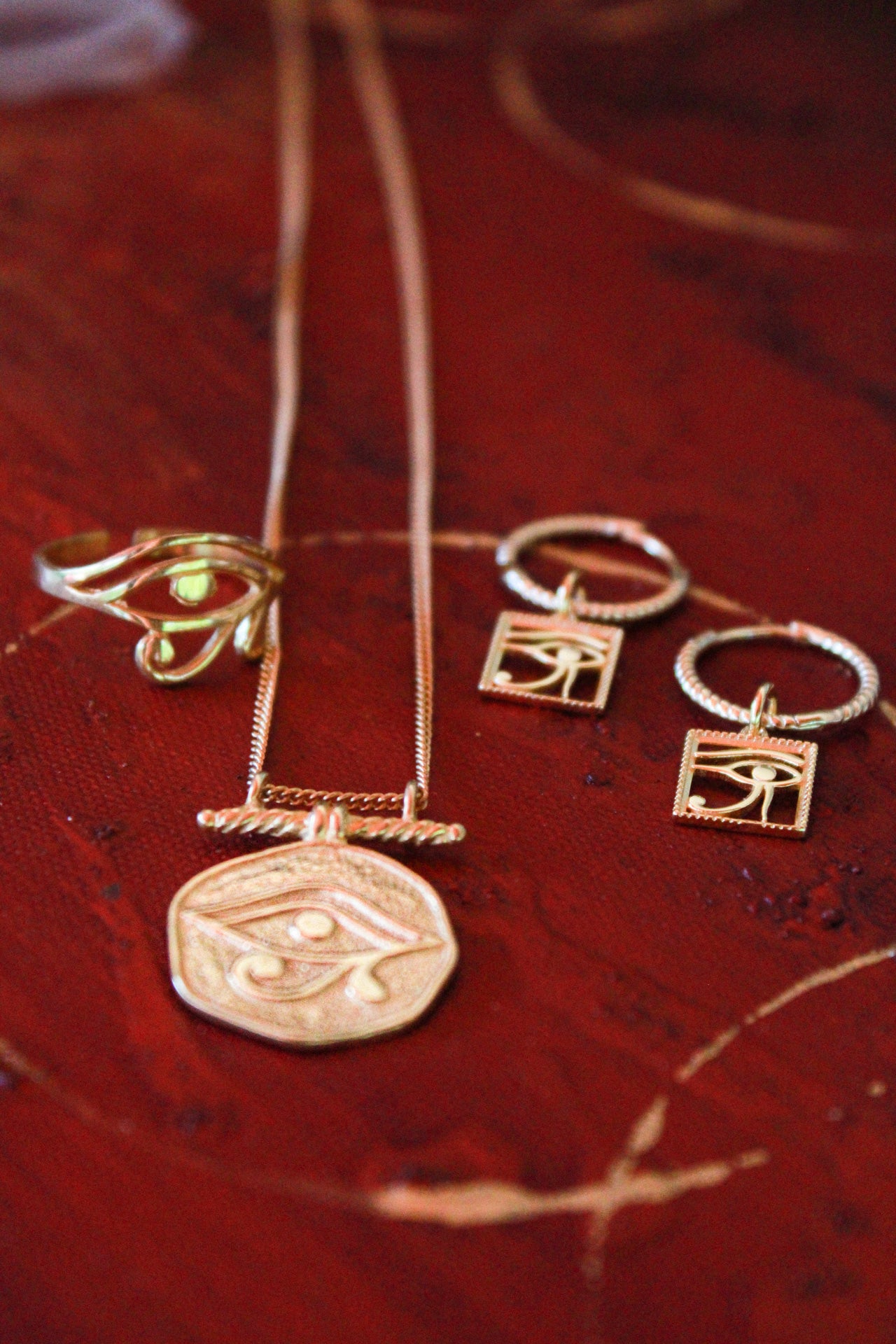 L'Occhio di Horus è nella religione egizia il simbolo di protezione, della prosperità, del potere regale e della buona salute, ed è personificato dalla dea Wadjet.