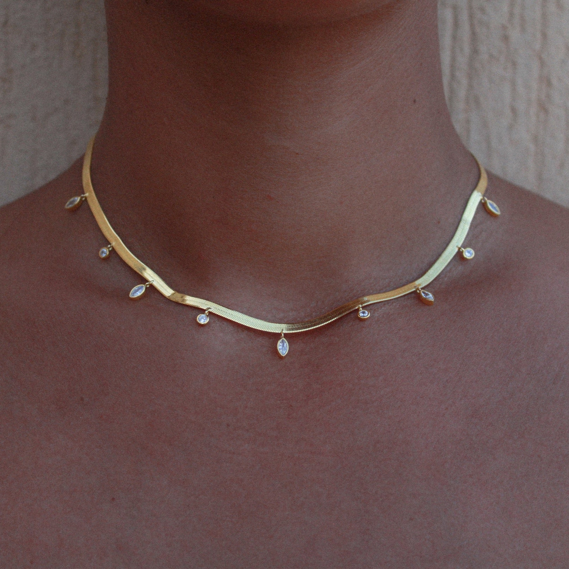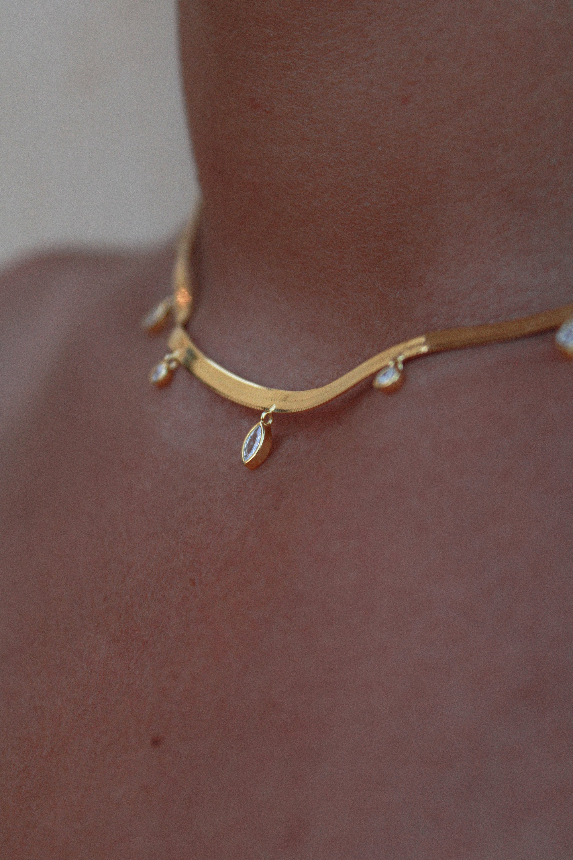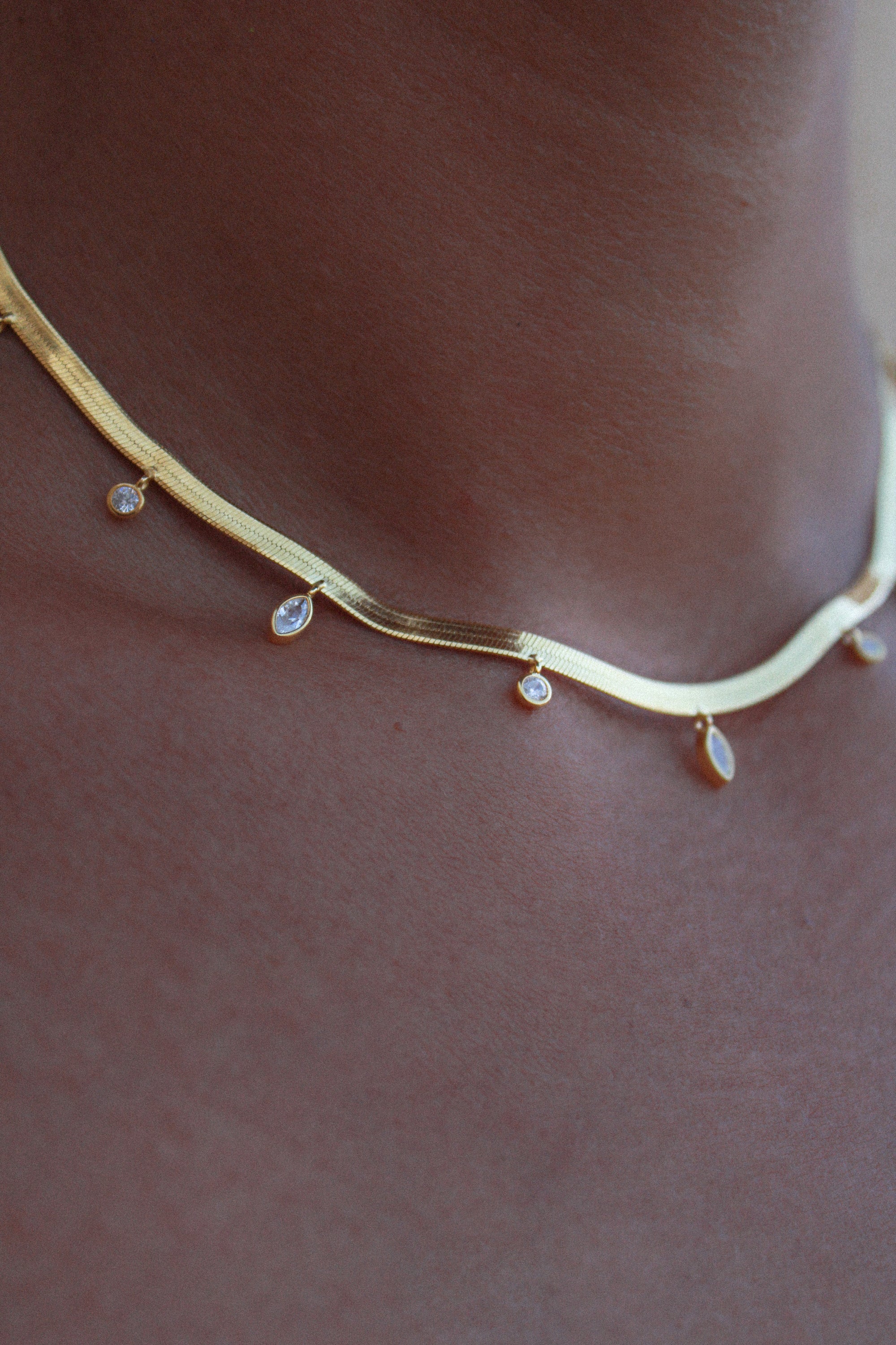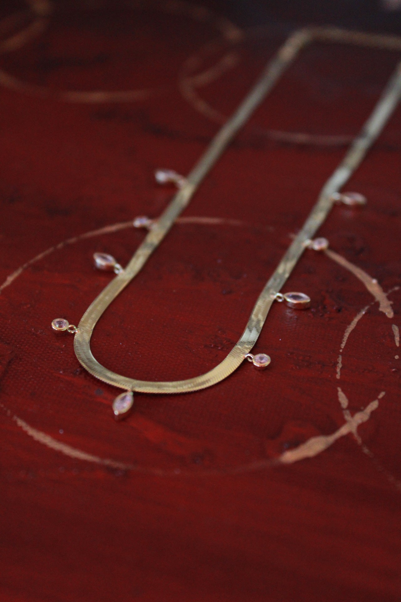 Collana in argento 925 placcato Oro 18k con punti luce bianchi.