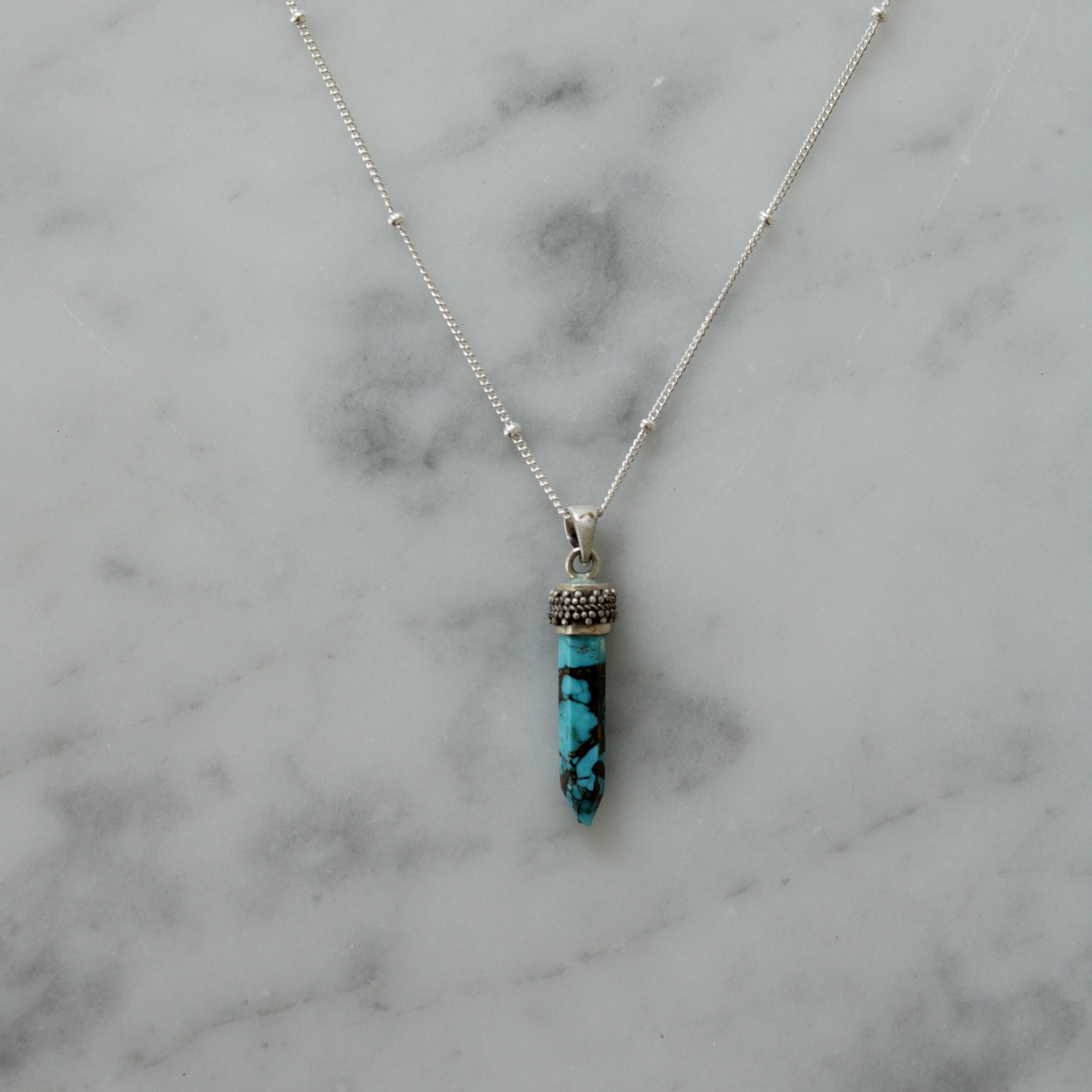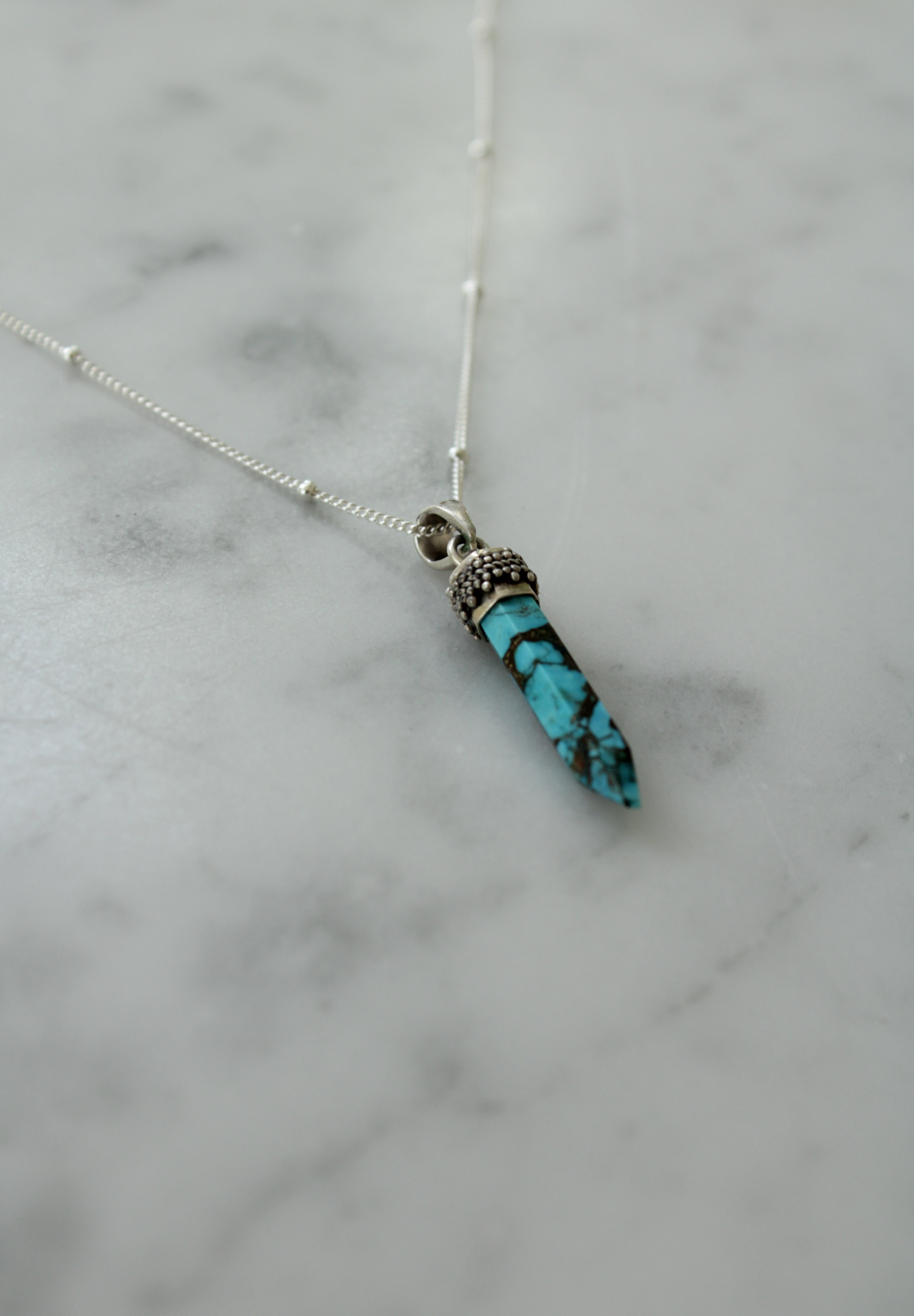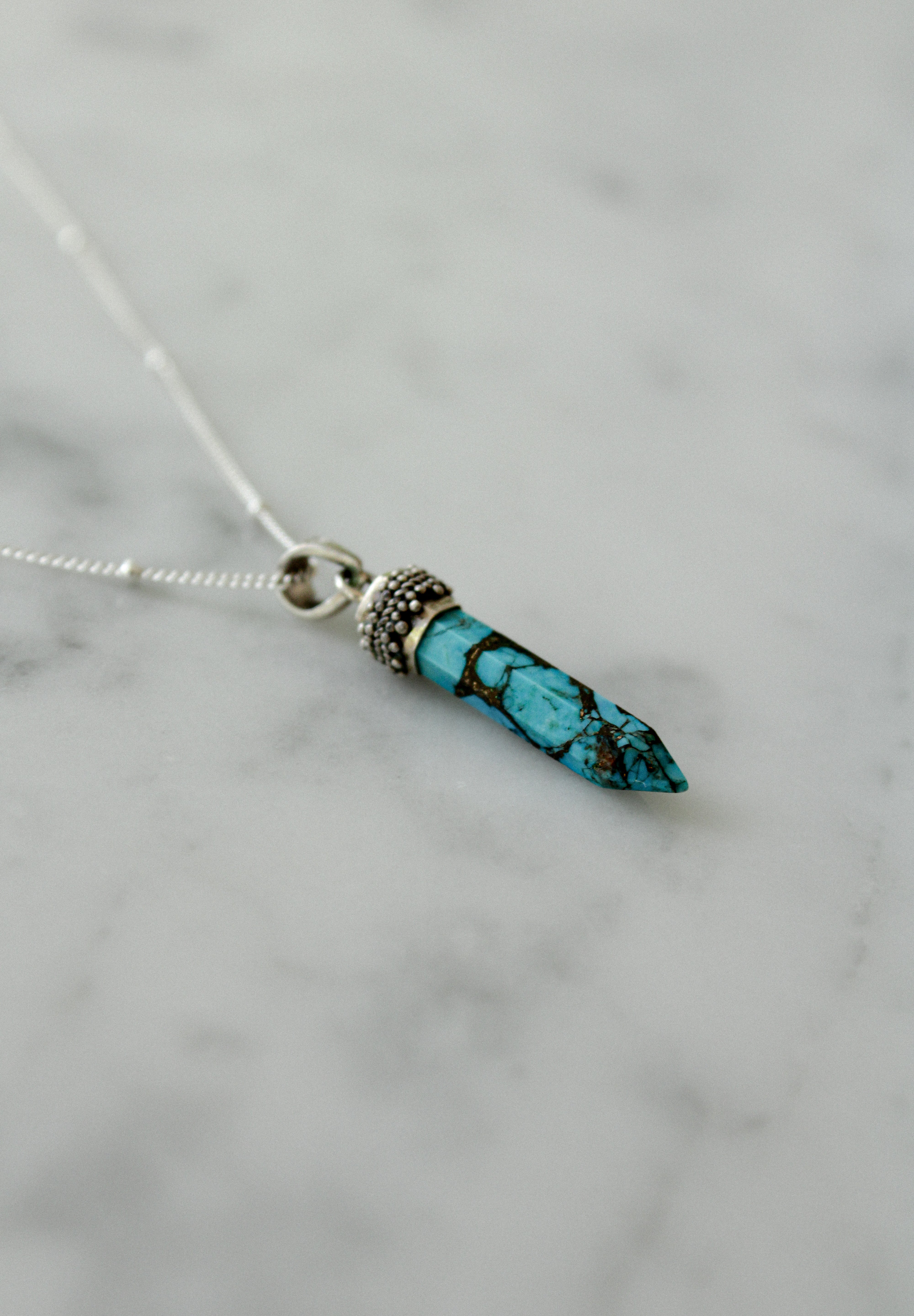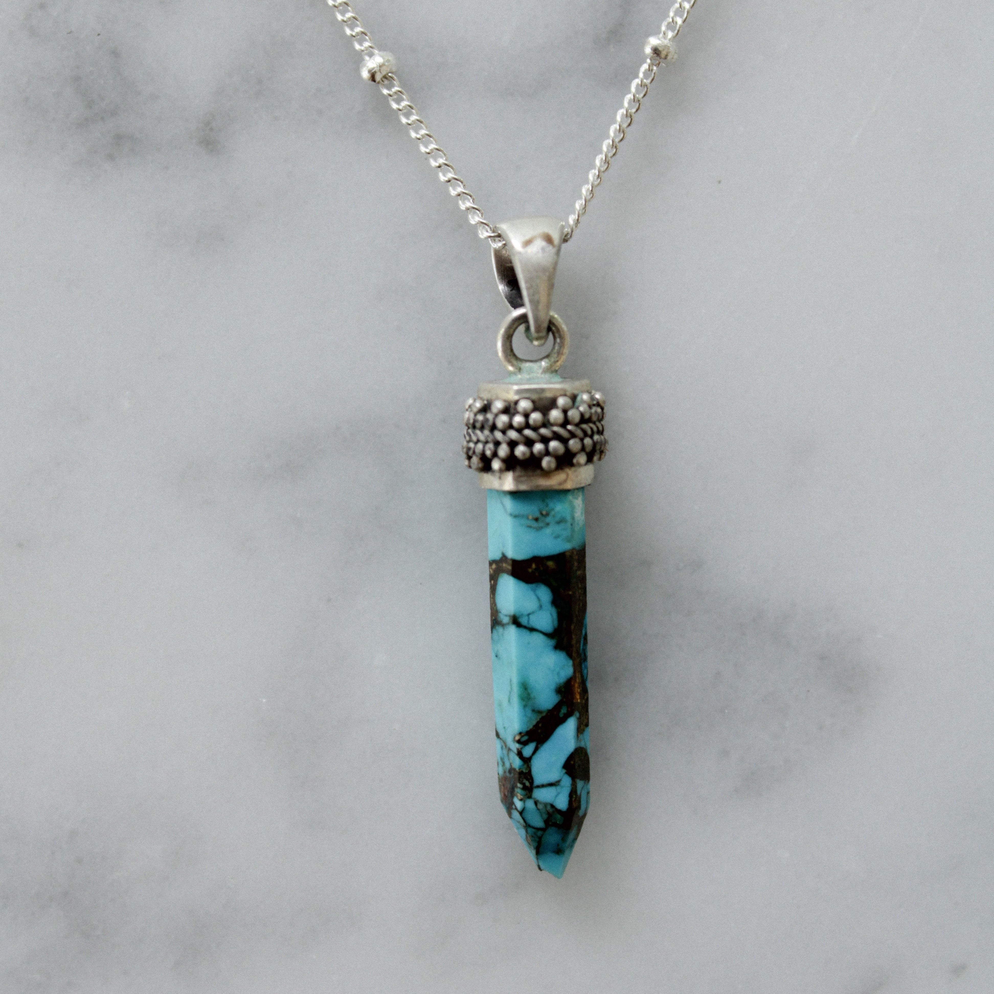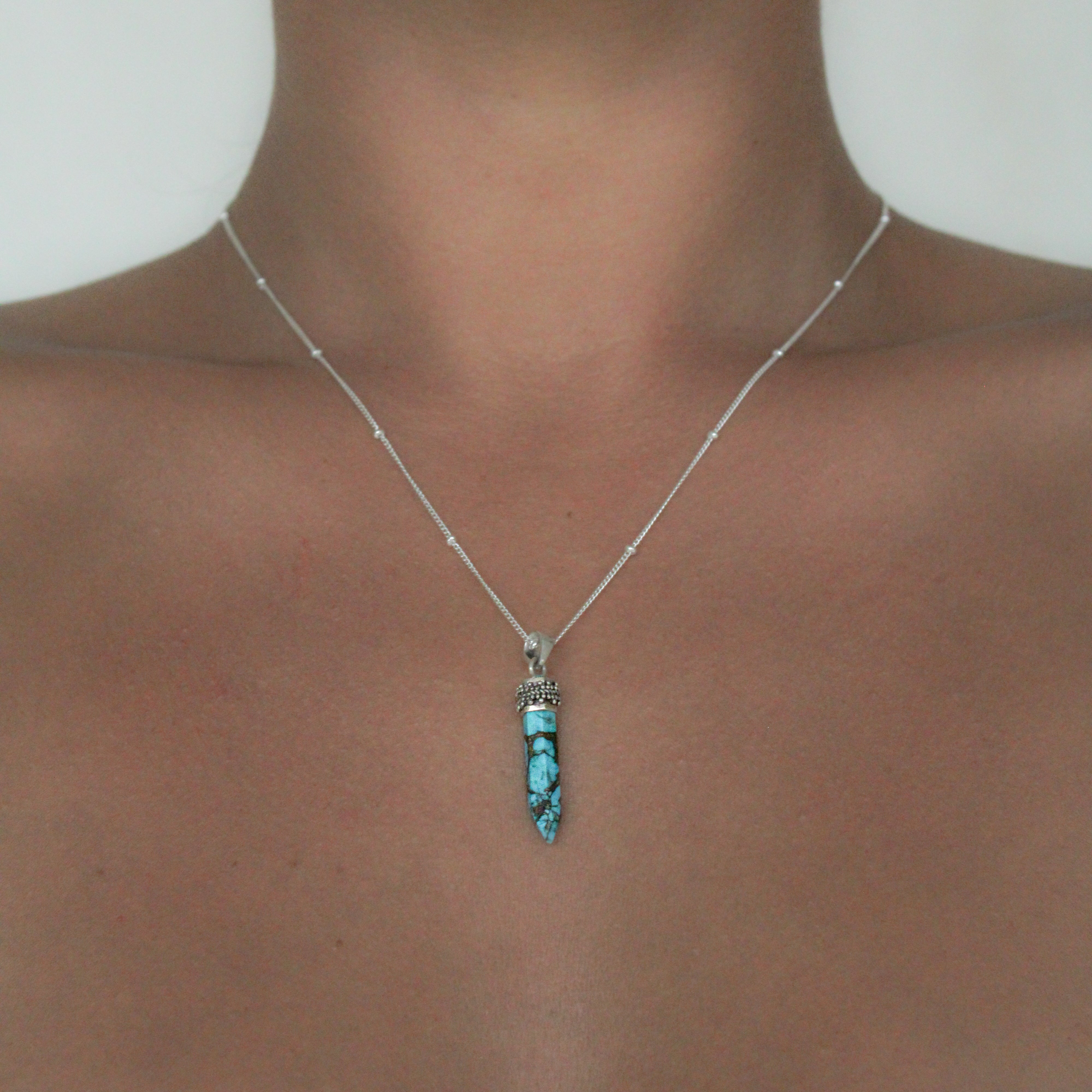 Collana in argento 925 con pendente cristallo di Turchese.