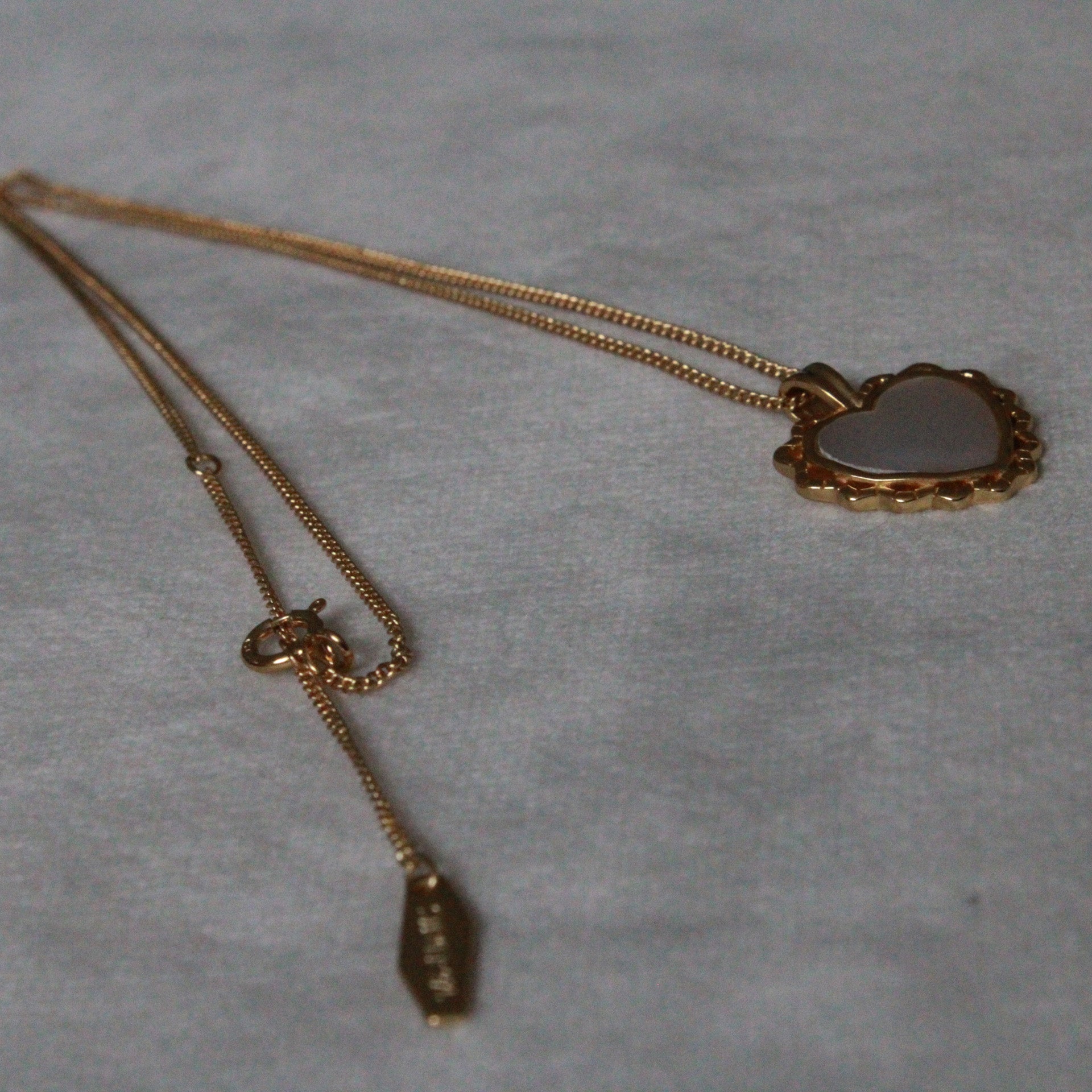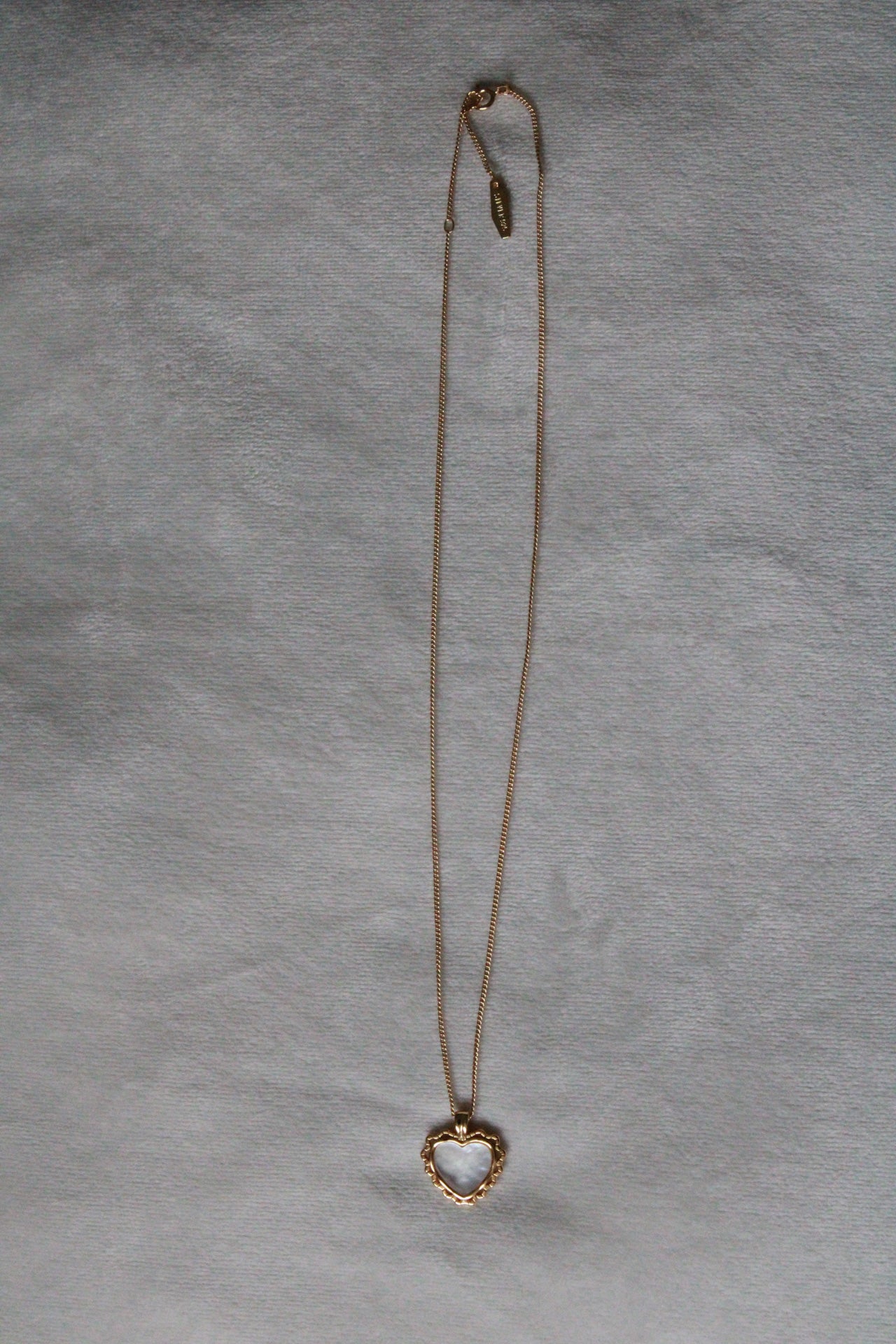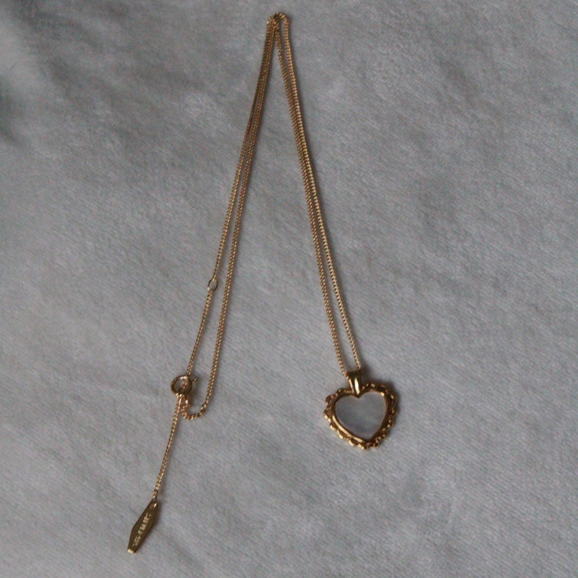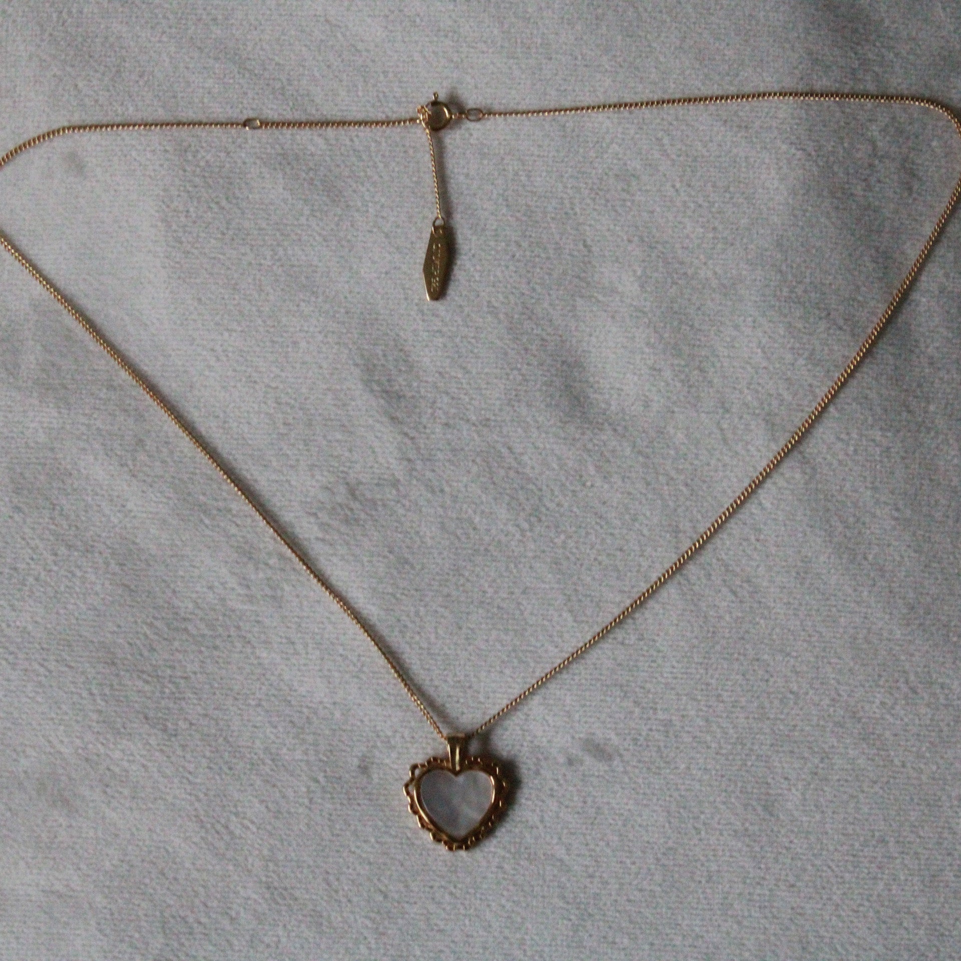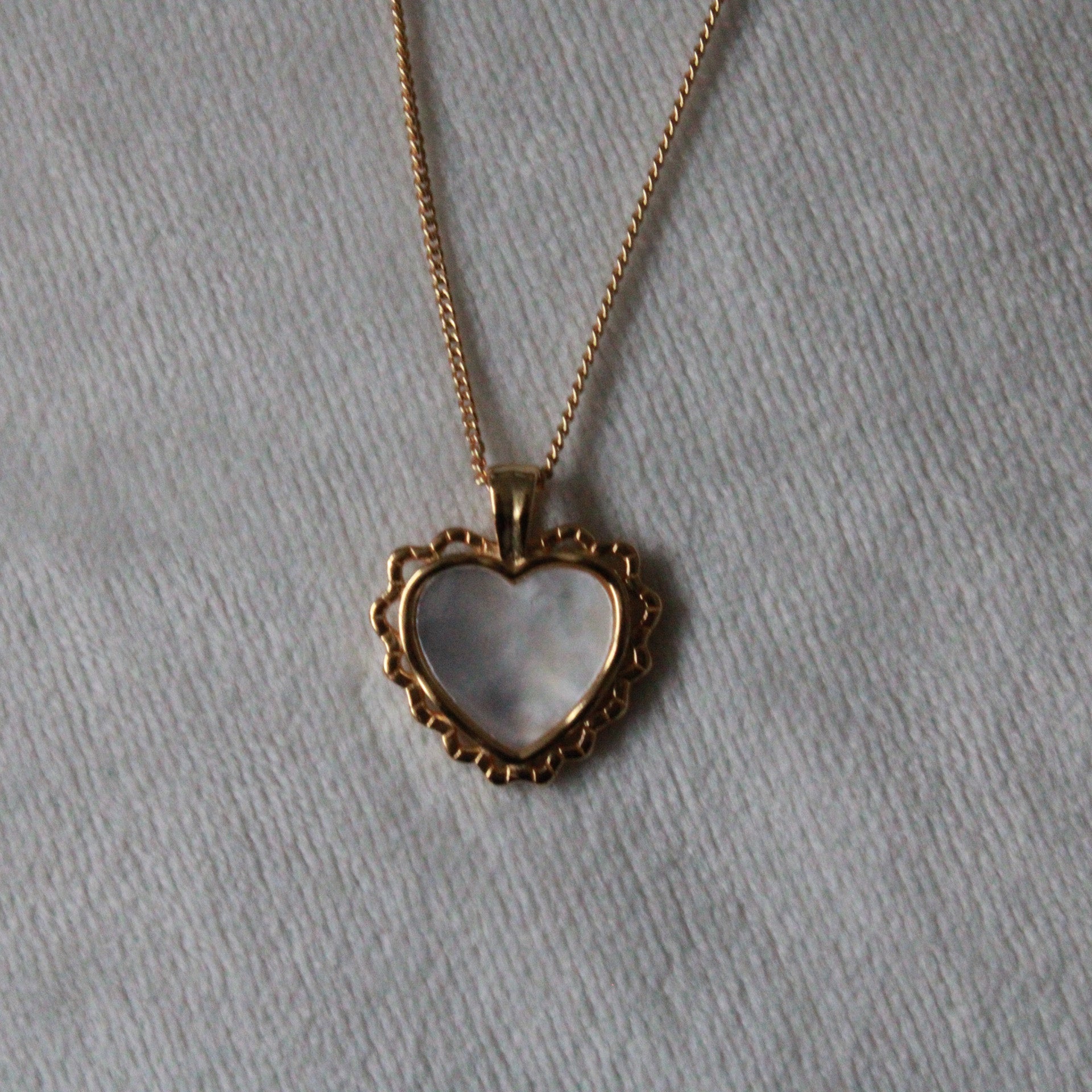 Collana in Argento 925 placcata Oro 18k con ciondolo a forma di cuore in madreperla con cornice in stile barocco.