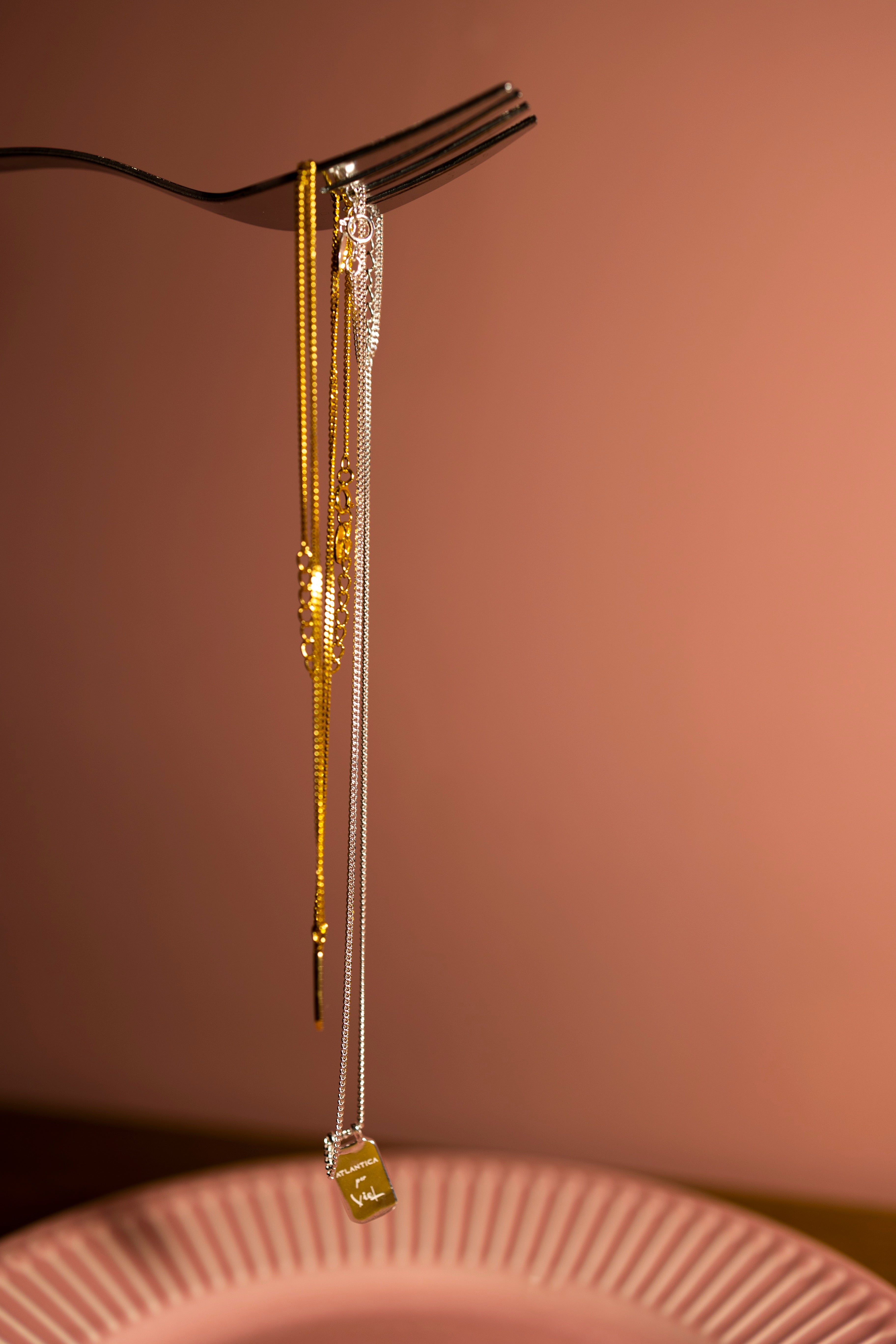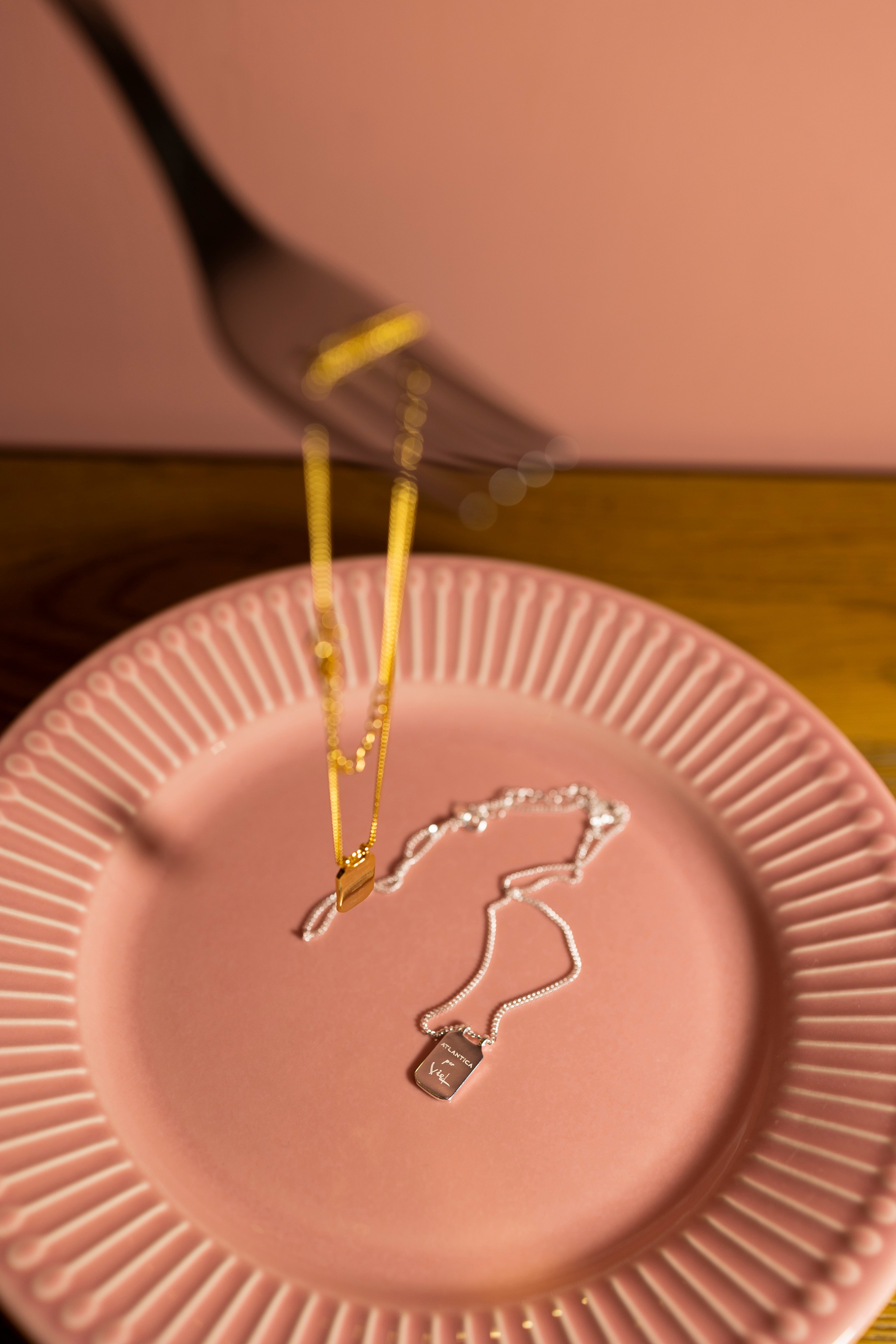 Abbiamo creato una collana in argento 925 in due varianti: una silver, che rappresenta me, ed una gold (bagnata in oro 18k), che rappresenta Veronica.