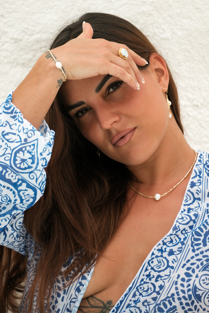 Ispirata all’uso tradizionale delle perle nei gioielli turchi, ogni pezzo racchiude la delicatezza e l’eleganza di questo elemento, considerato simbolo di saggezza e serenità.
