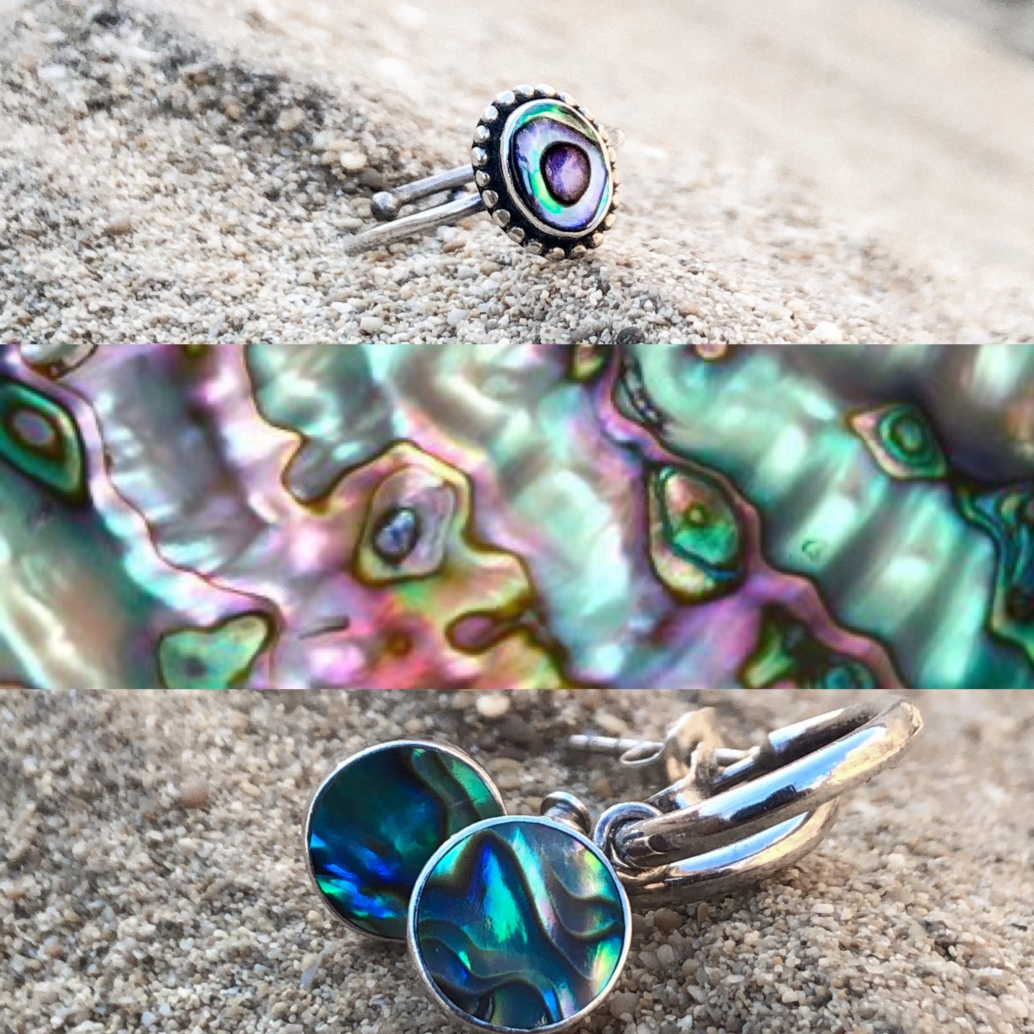 Ecco perchè questa parure in madreperla abalone credo abbia un tocco magico.