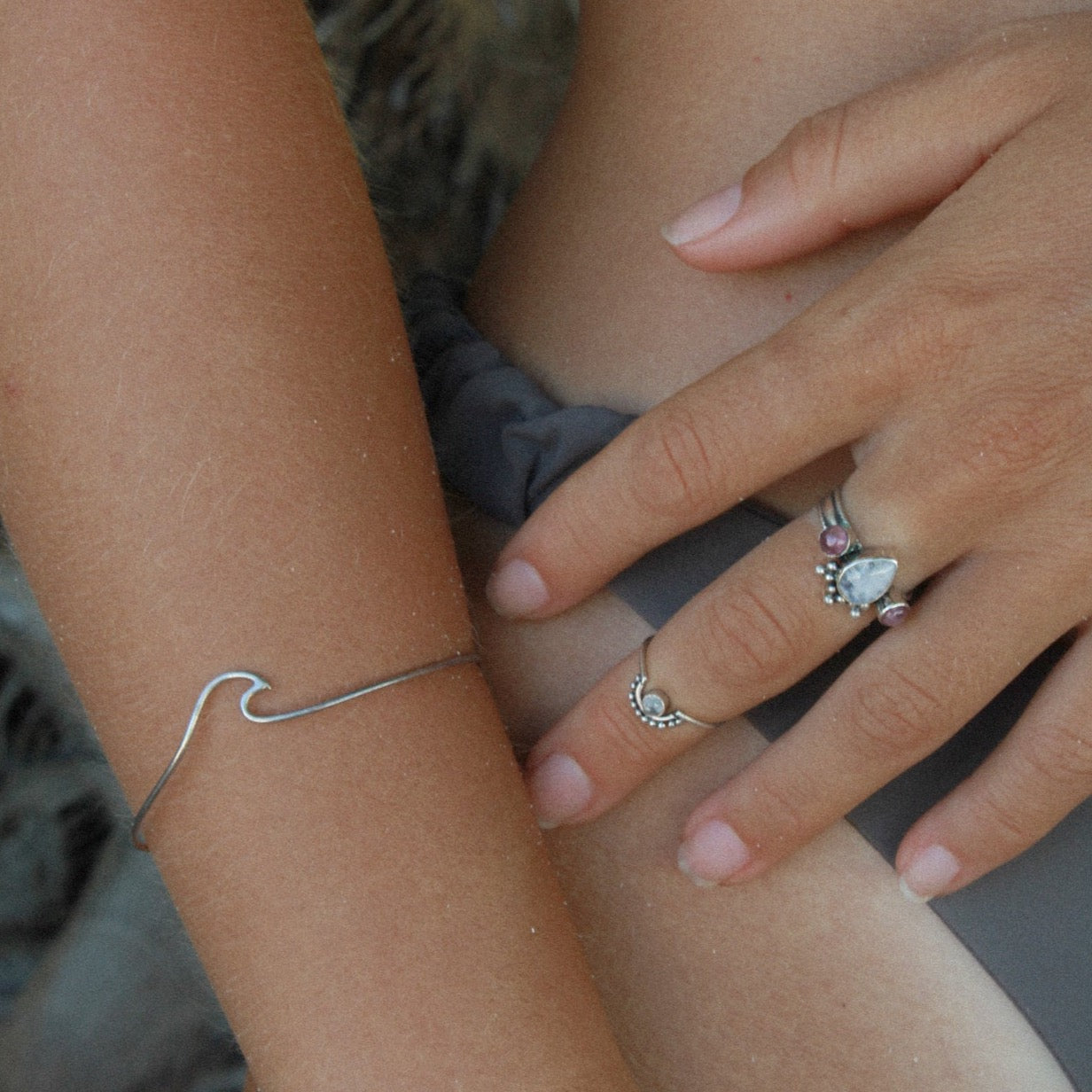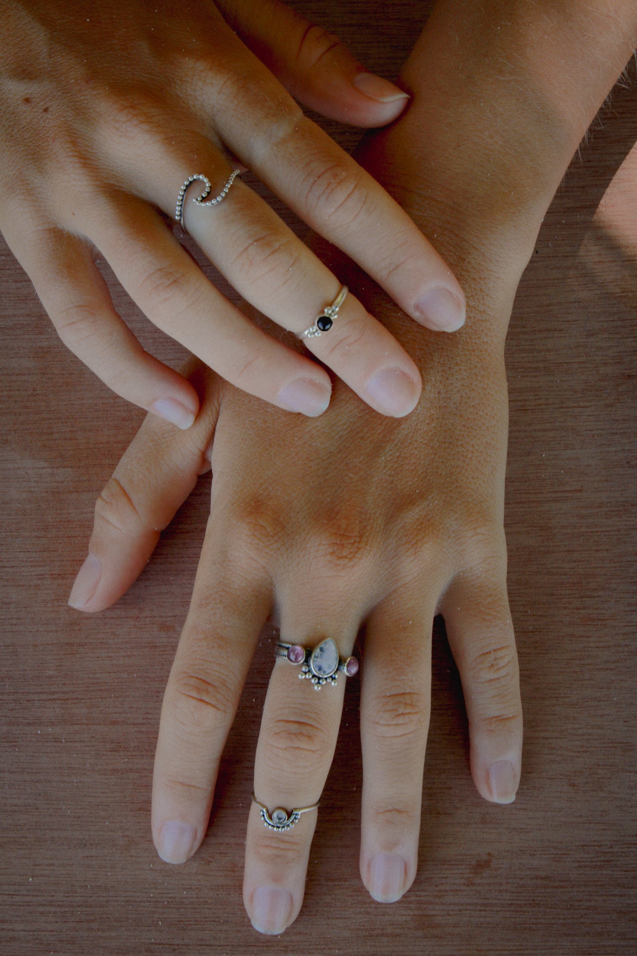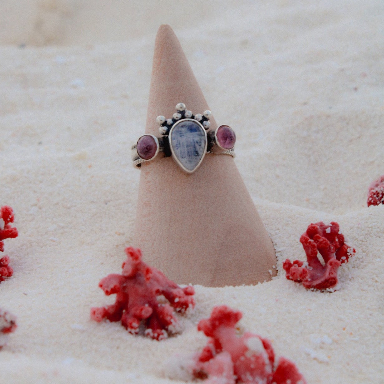 Anello in Argento 925 regolabile con pietra di Luna e Tormalina rosa.