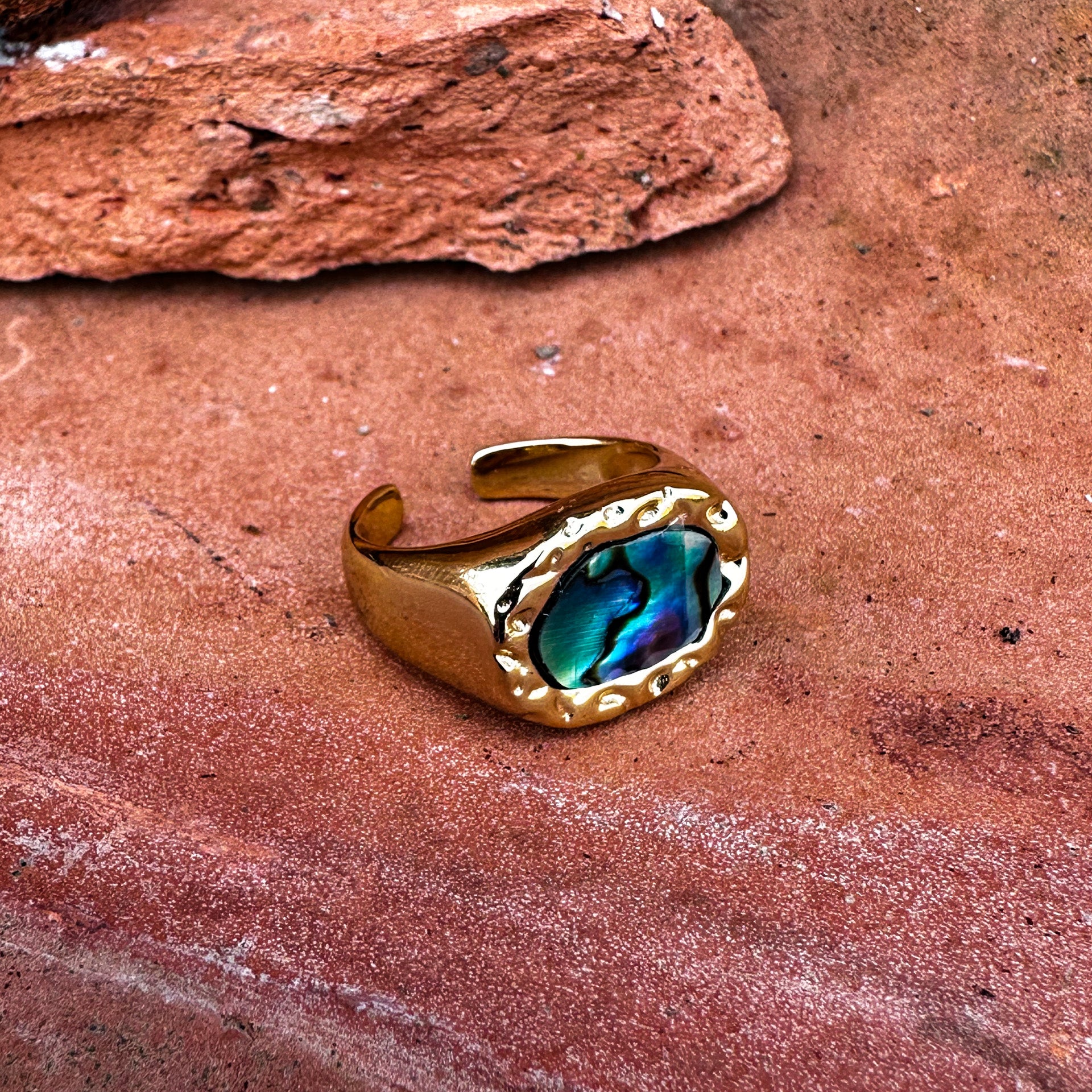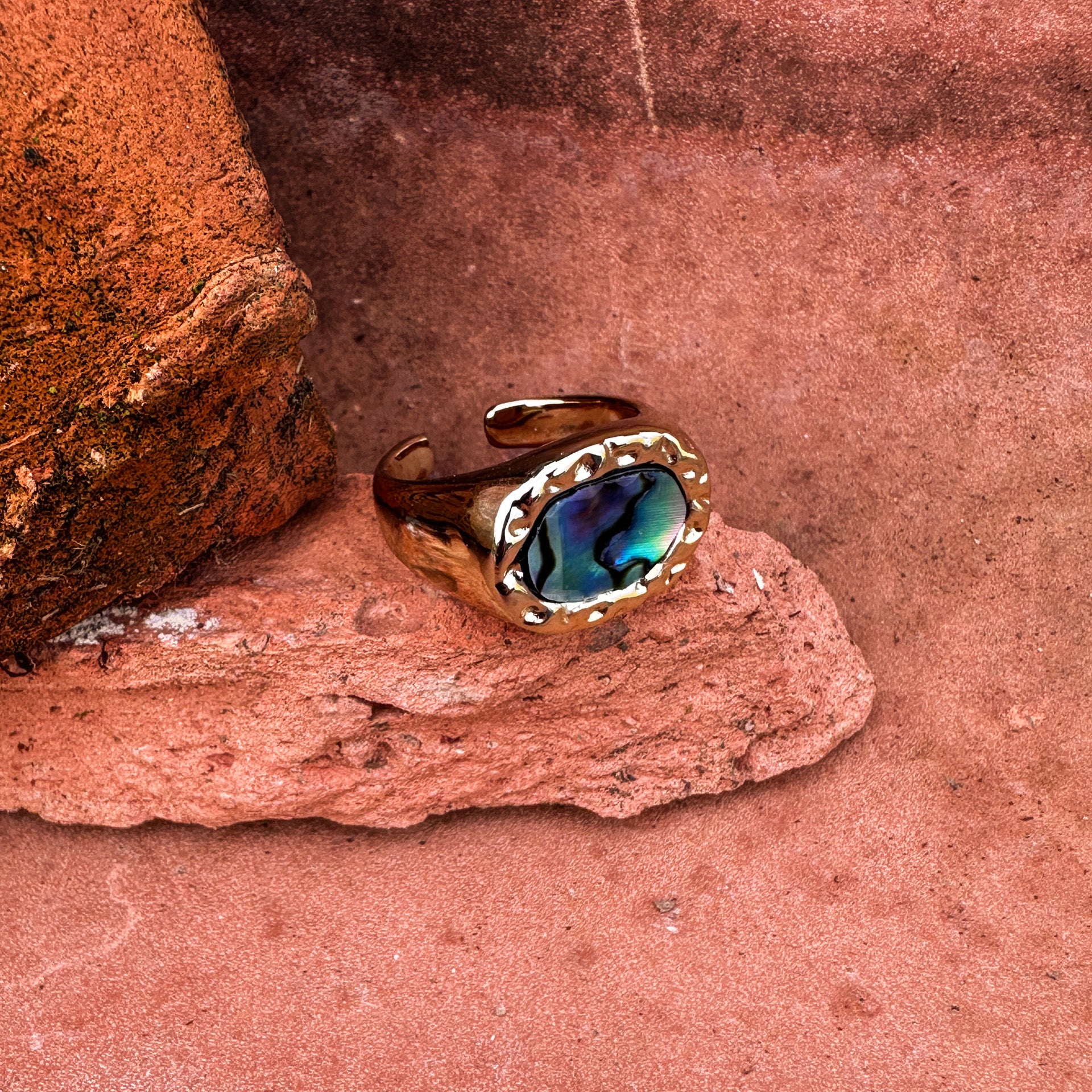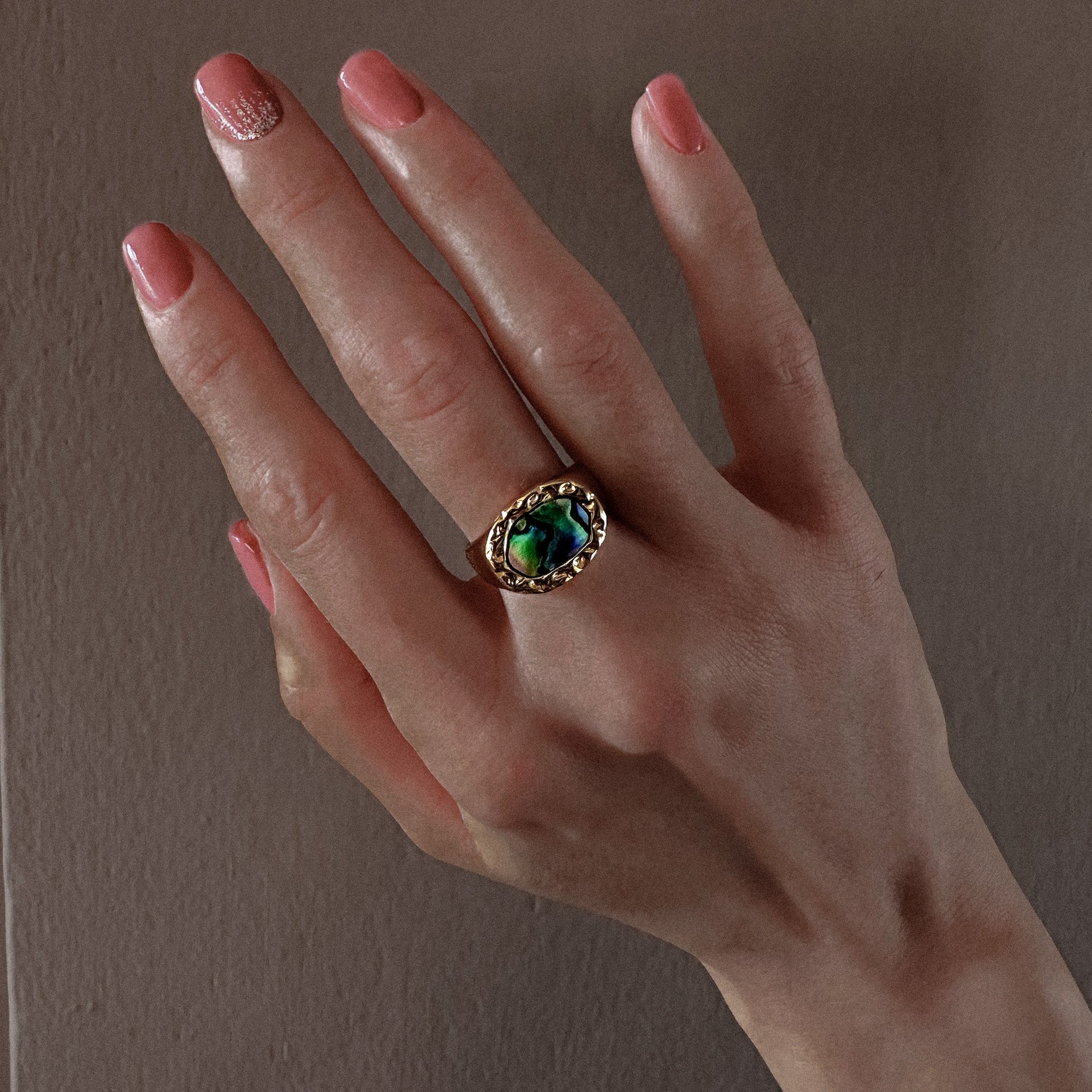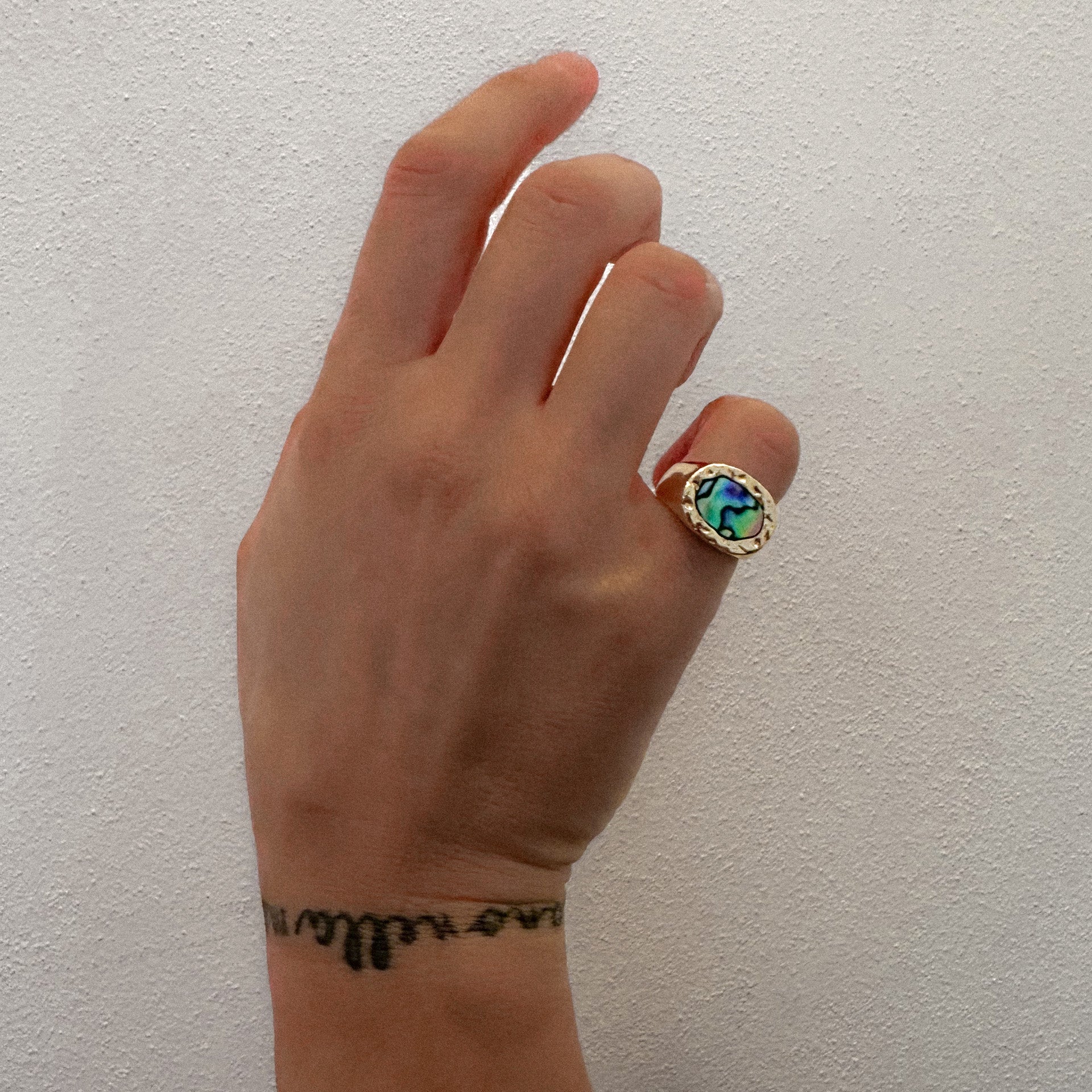 Anello chevalier regolabile in Argento 925 placcato Oro 18k con madreperla abalone.