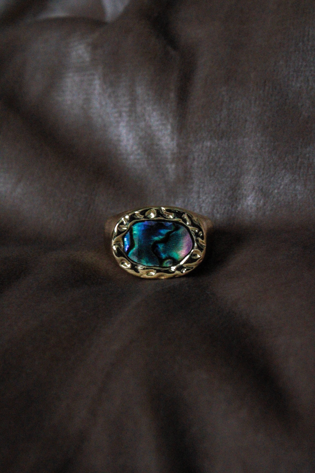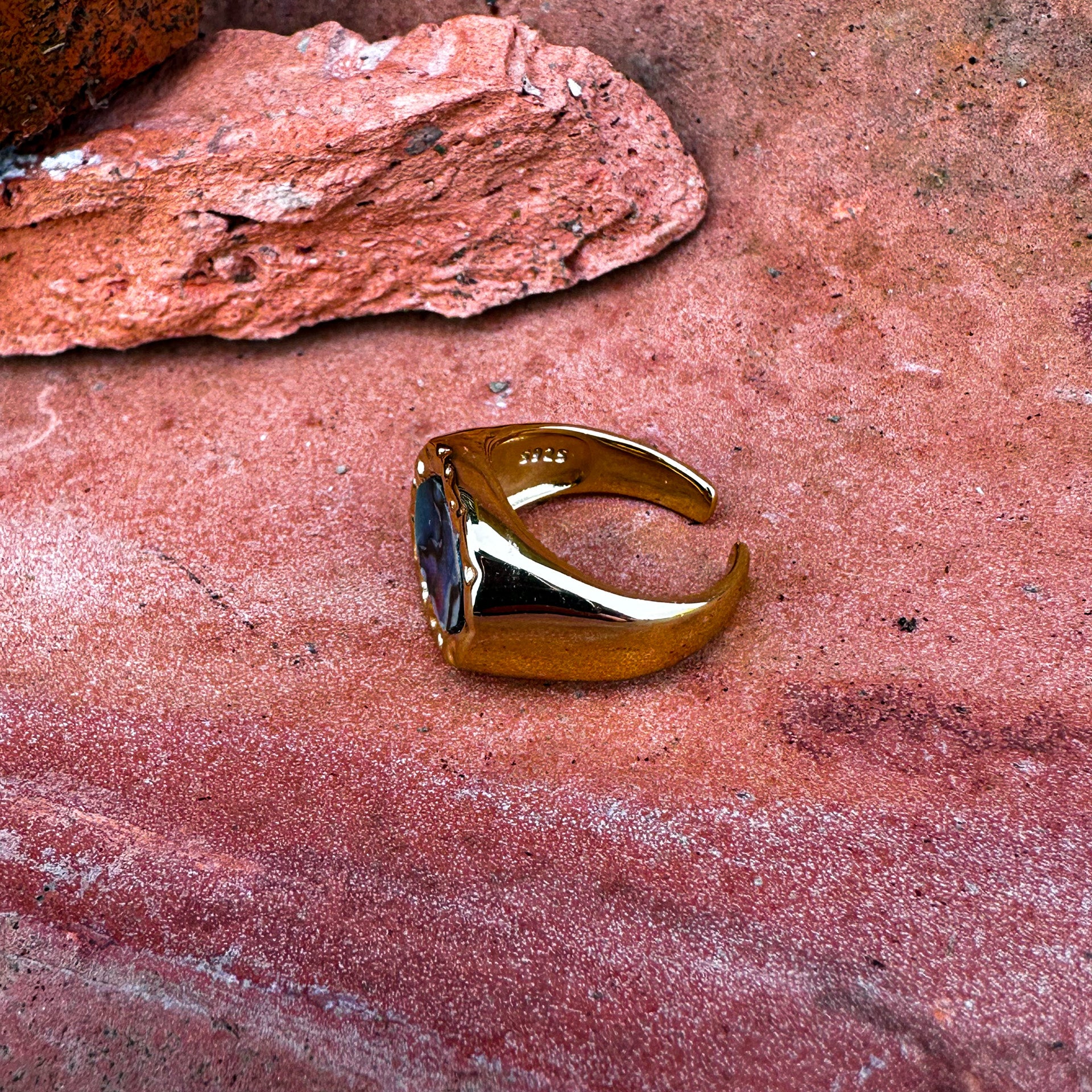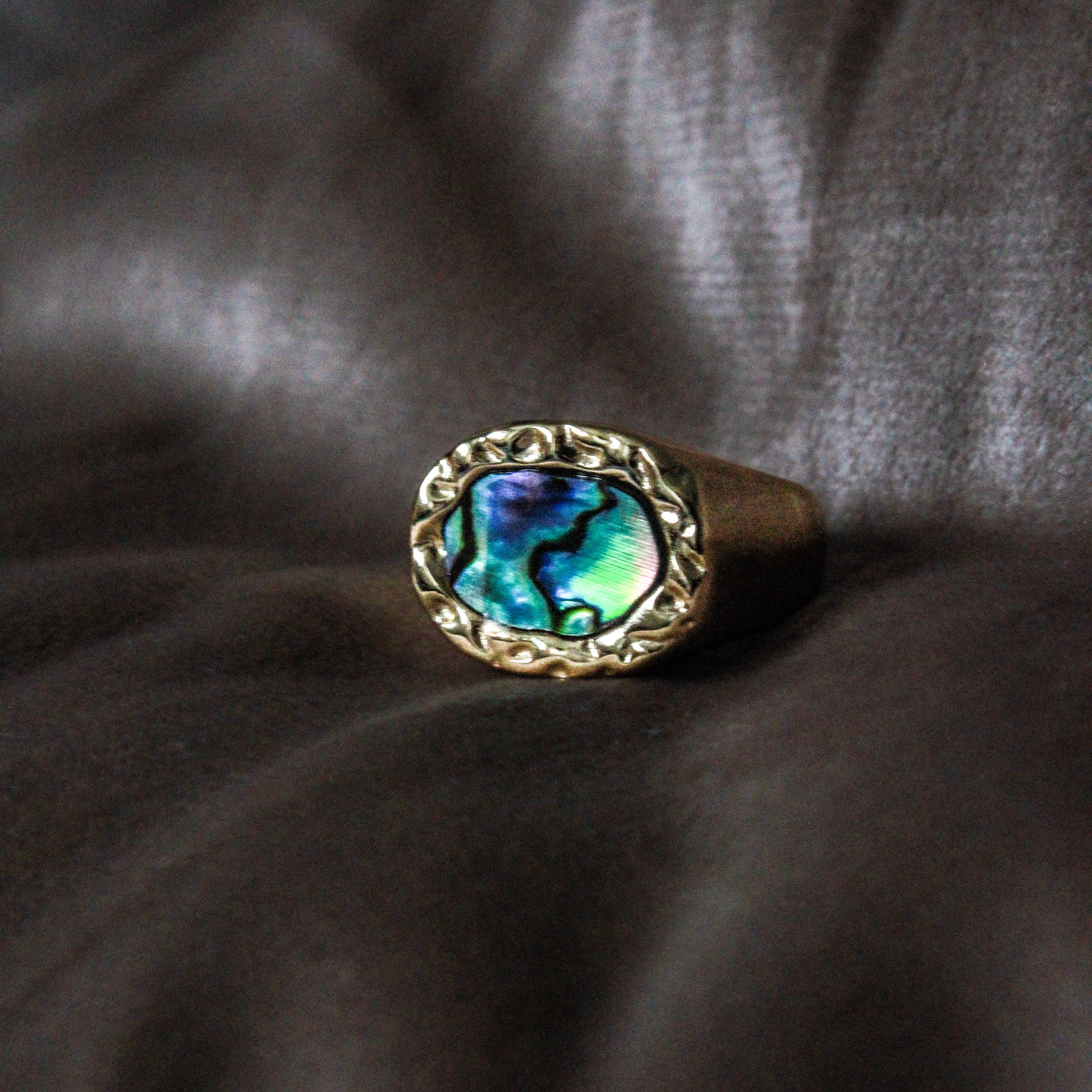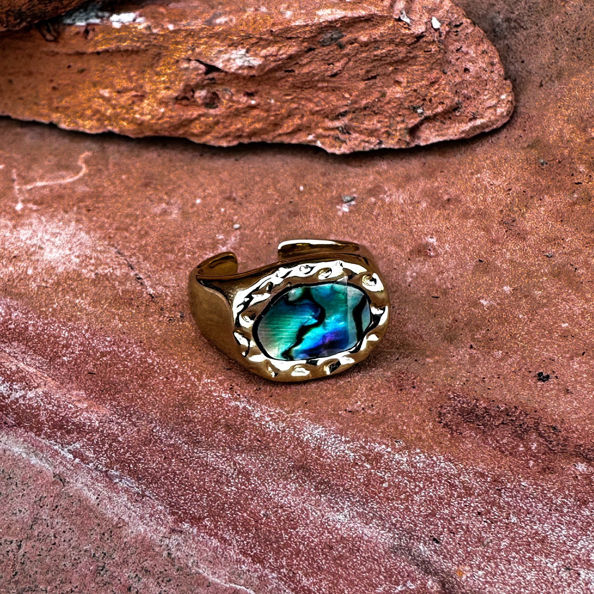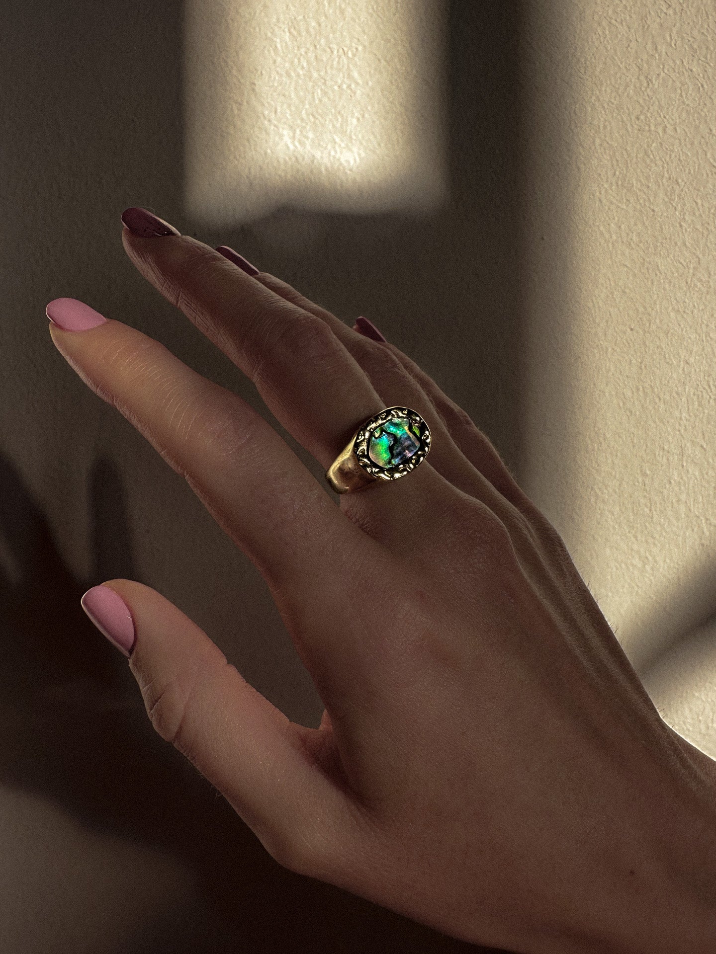 Anello chevalier regolabile in Argento 925 placcato Oro 18k con madreperla abalone.