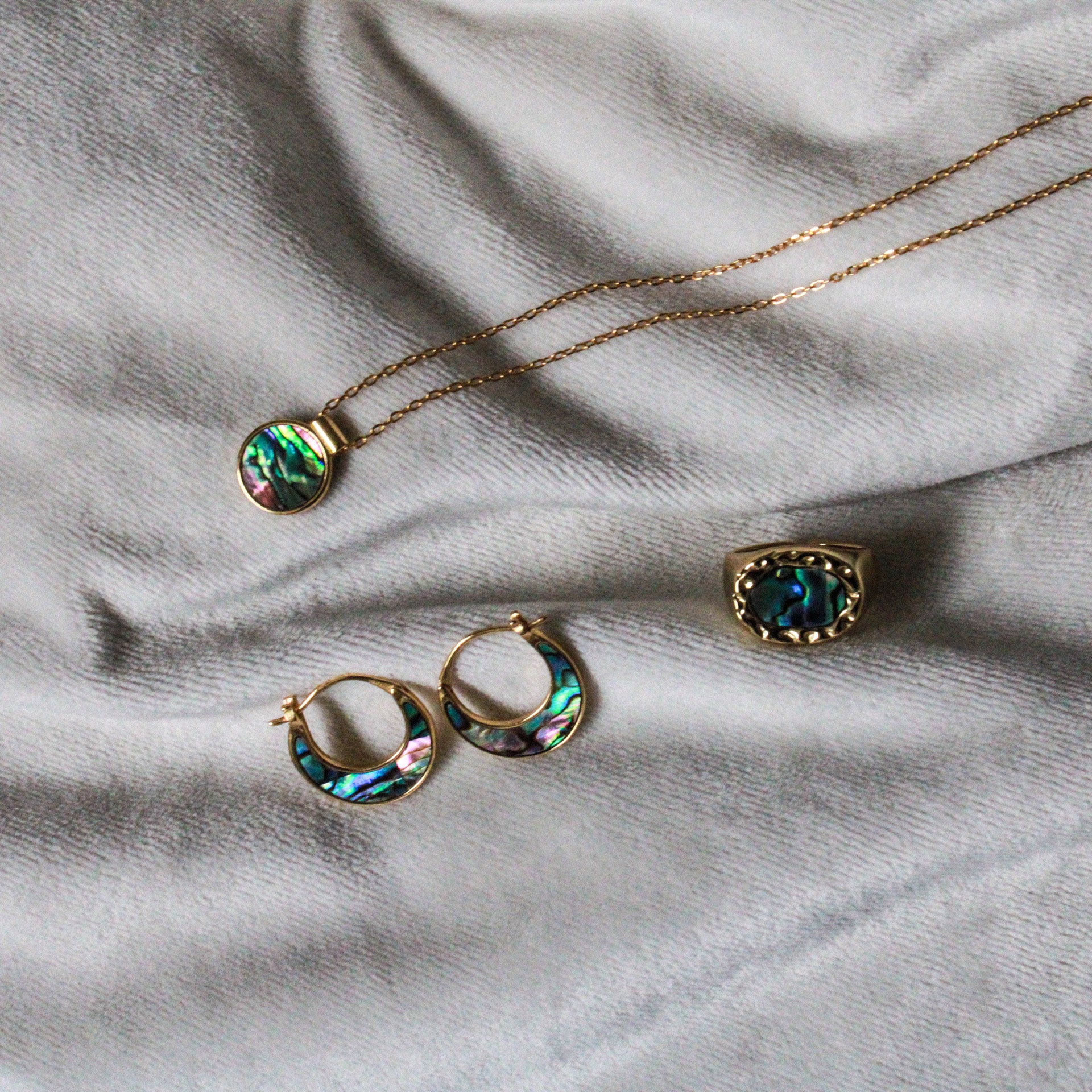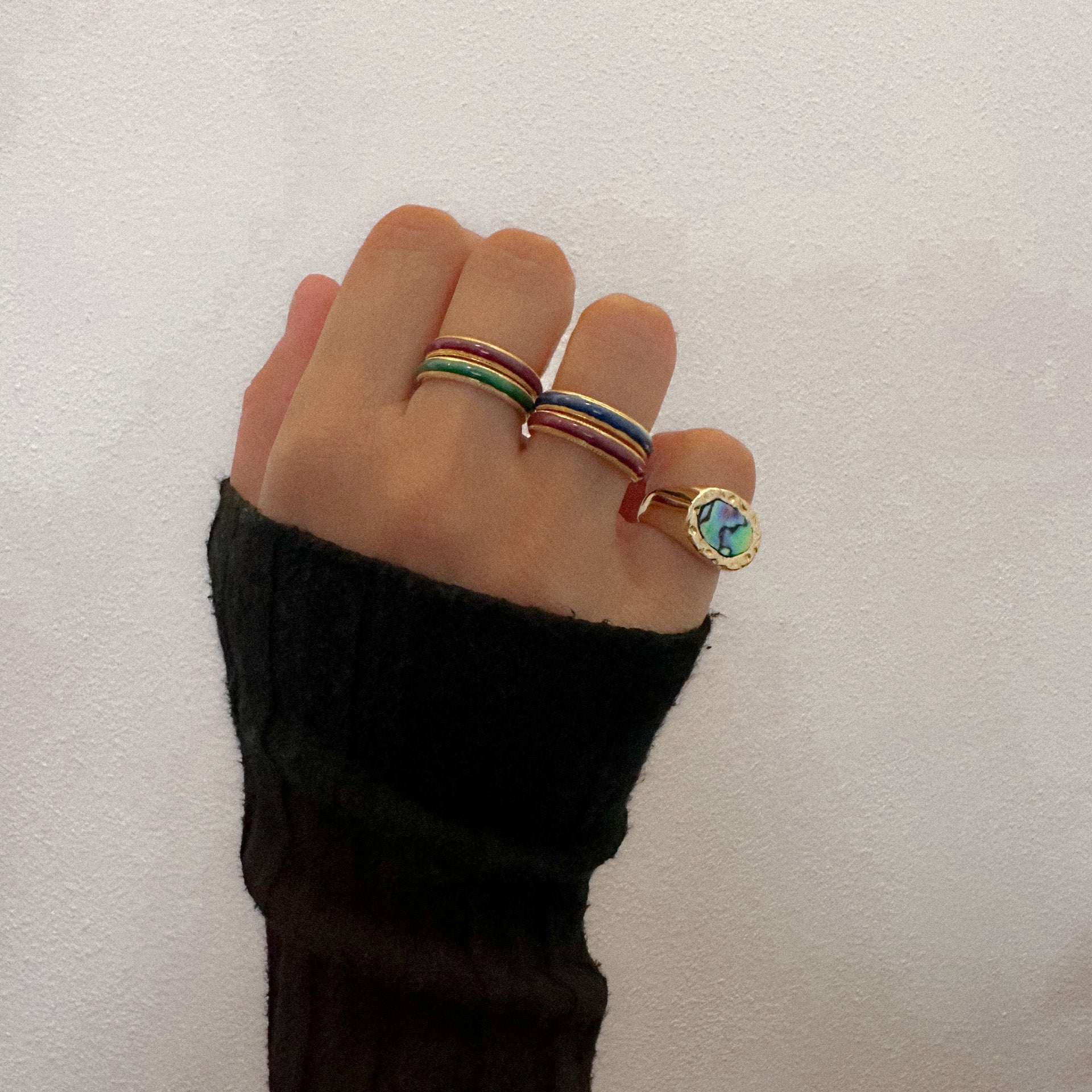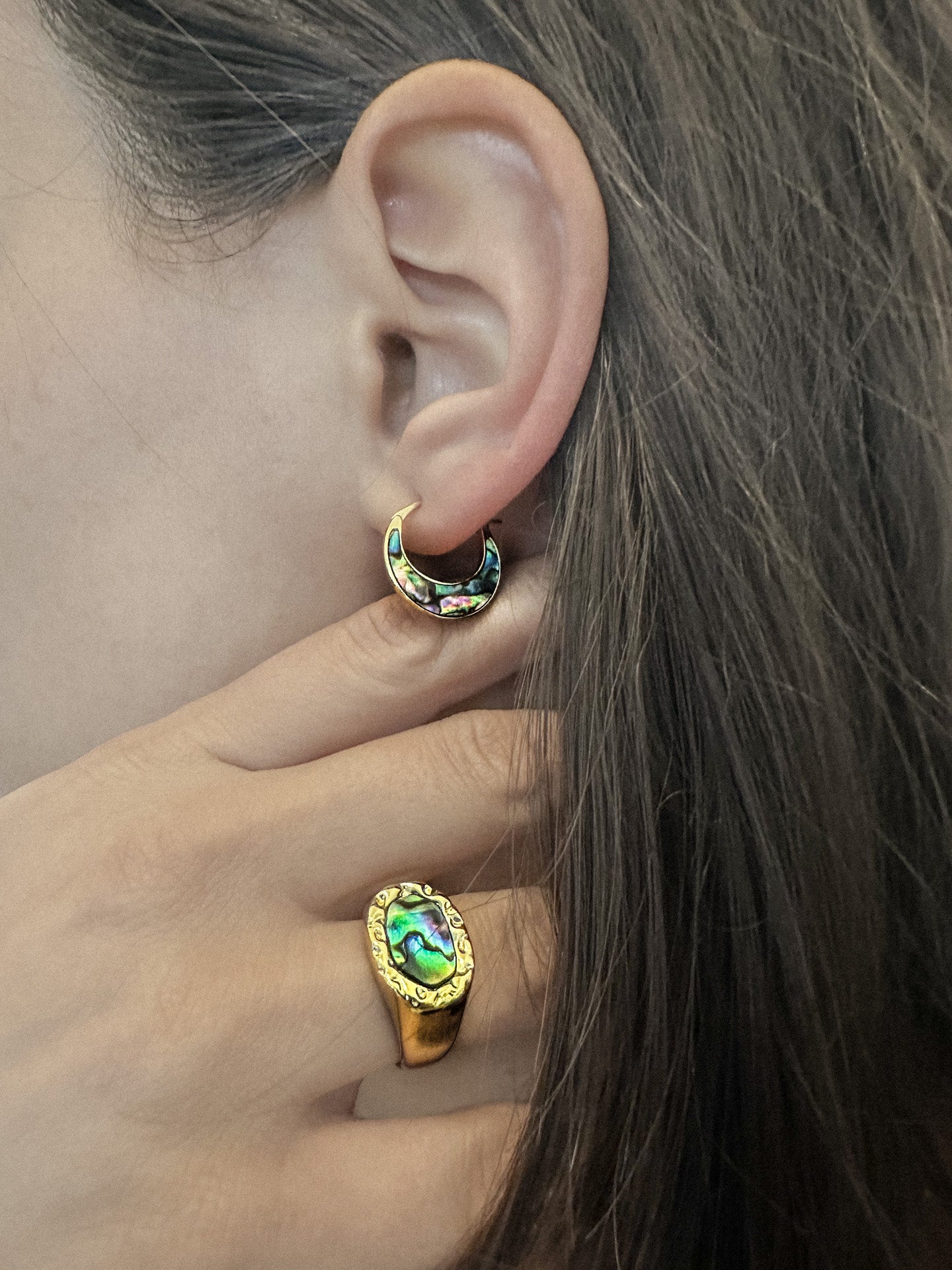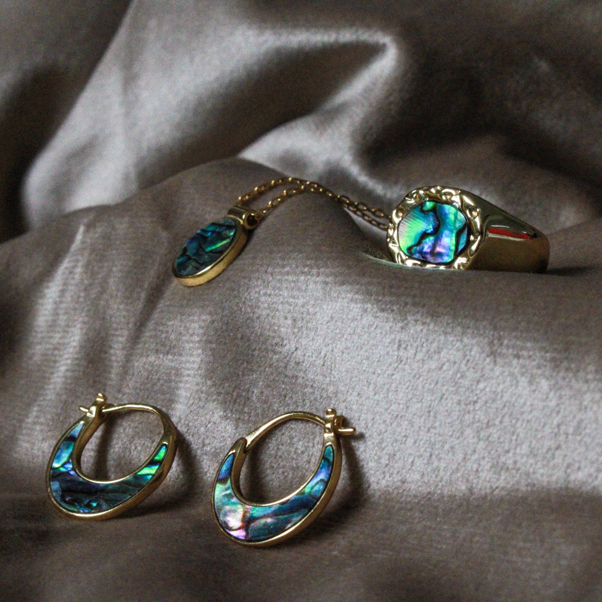 Anello chevalier regolabile in Argento 925 placcato Oro 18k con madreperla abalone.