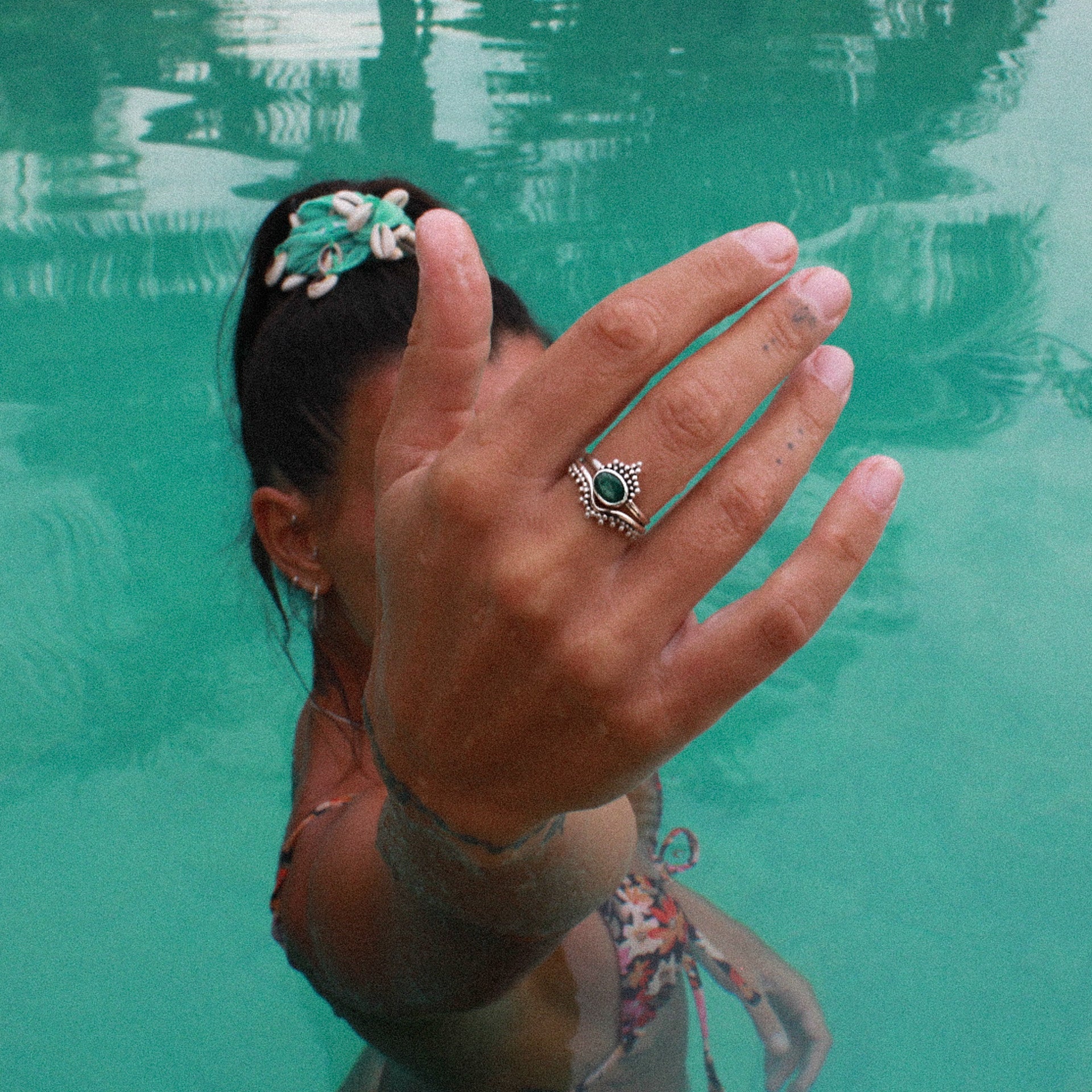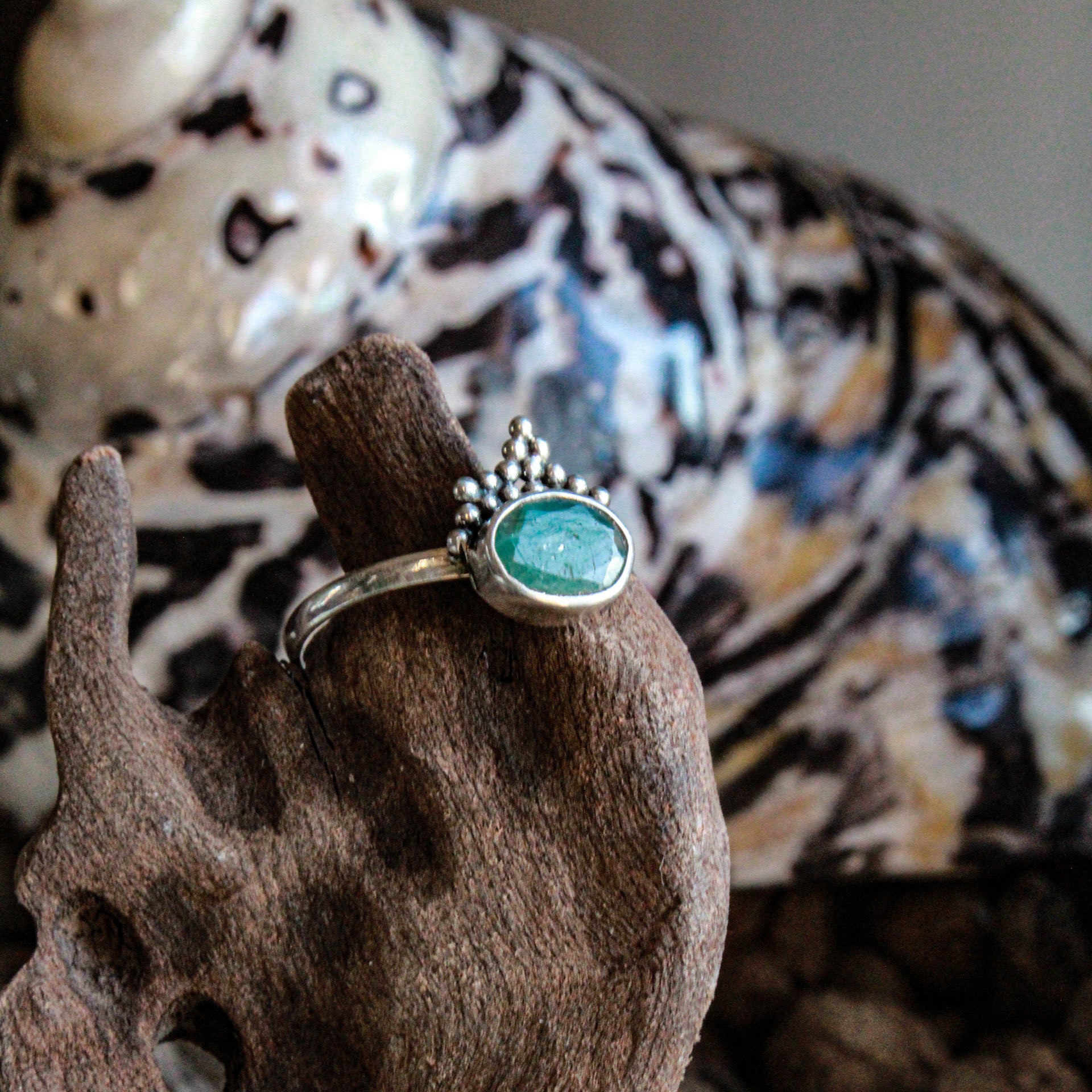 Anello Lombok - coridone smeraldo con le sfumature della giungla