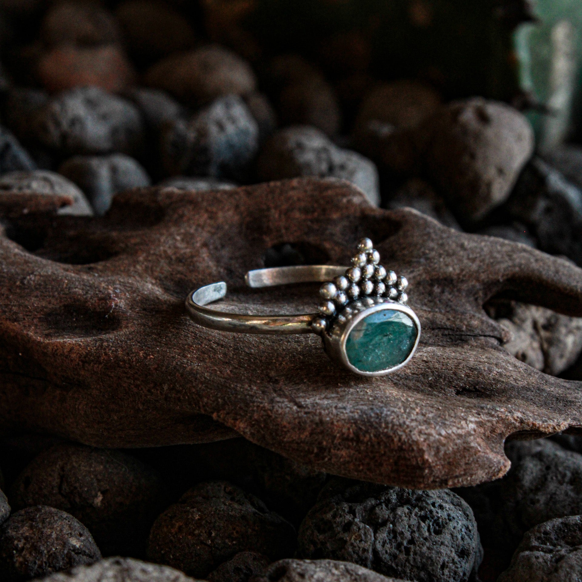 Anello in Argento 925 regolabile fatto a mano con pietra corindone smeraldo.