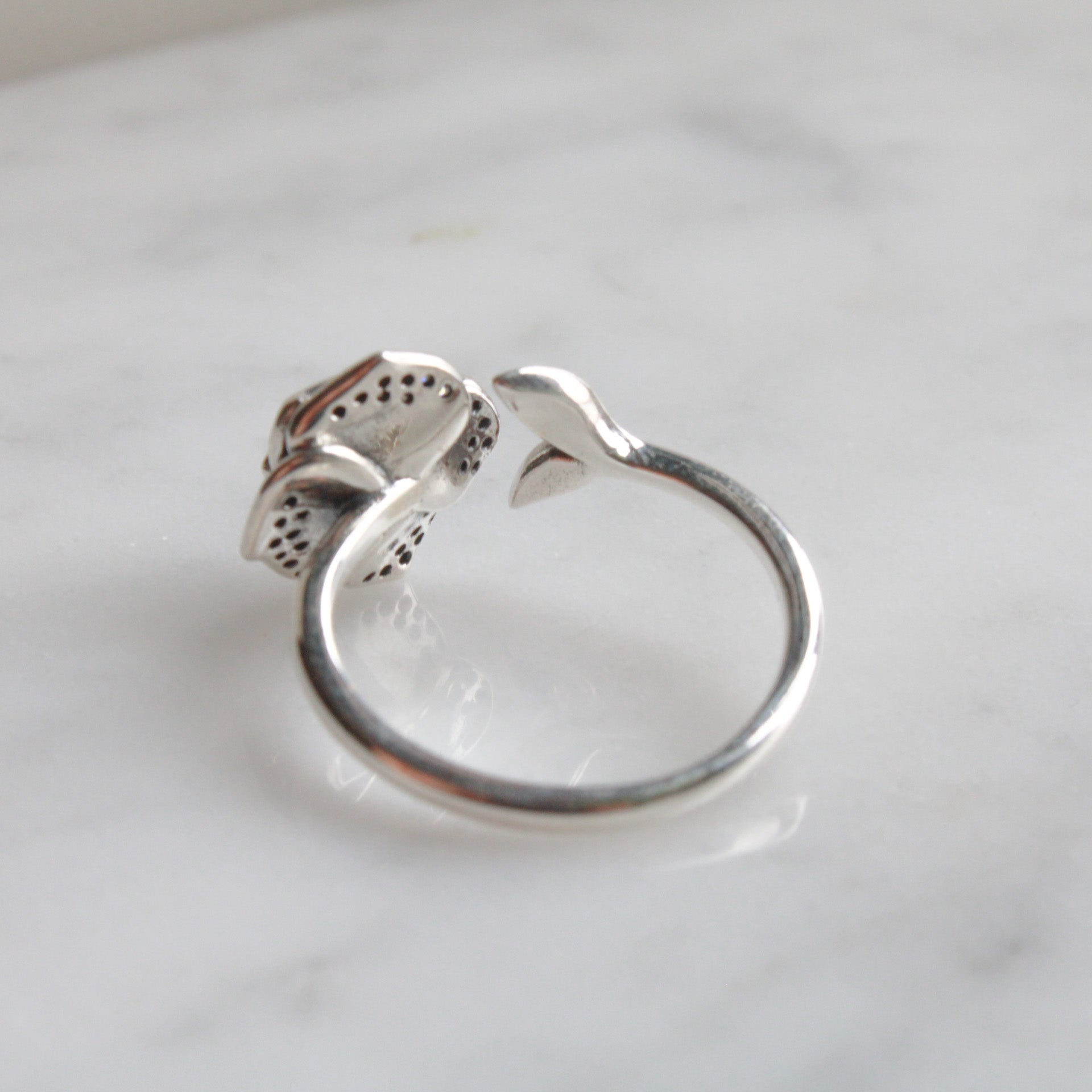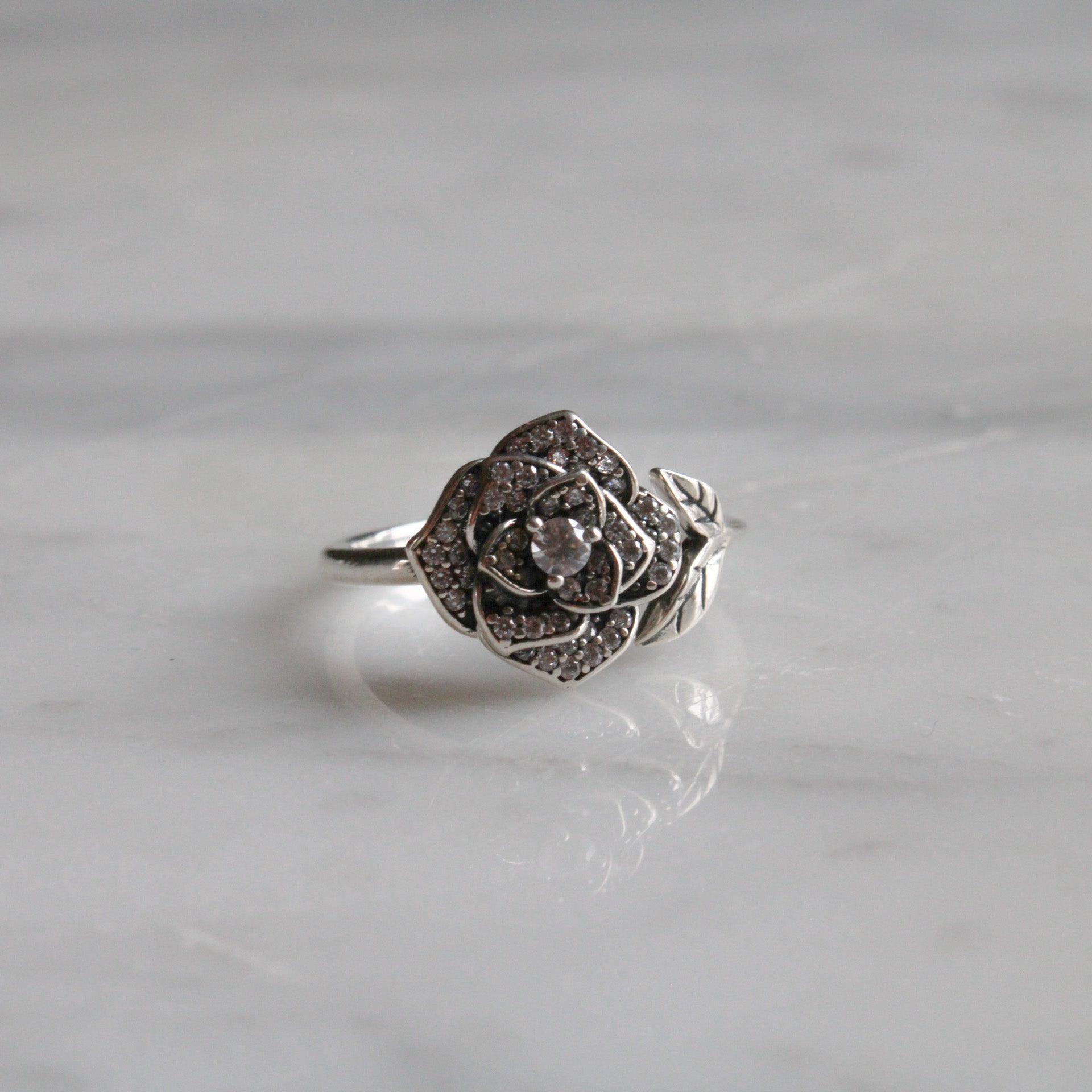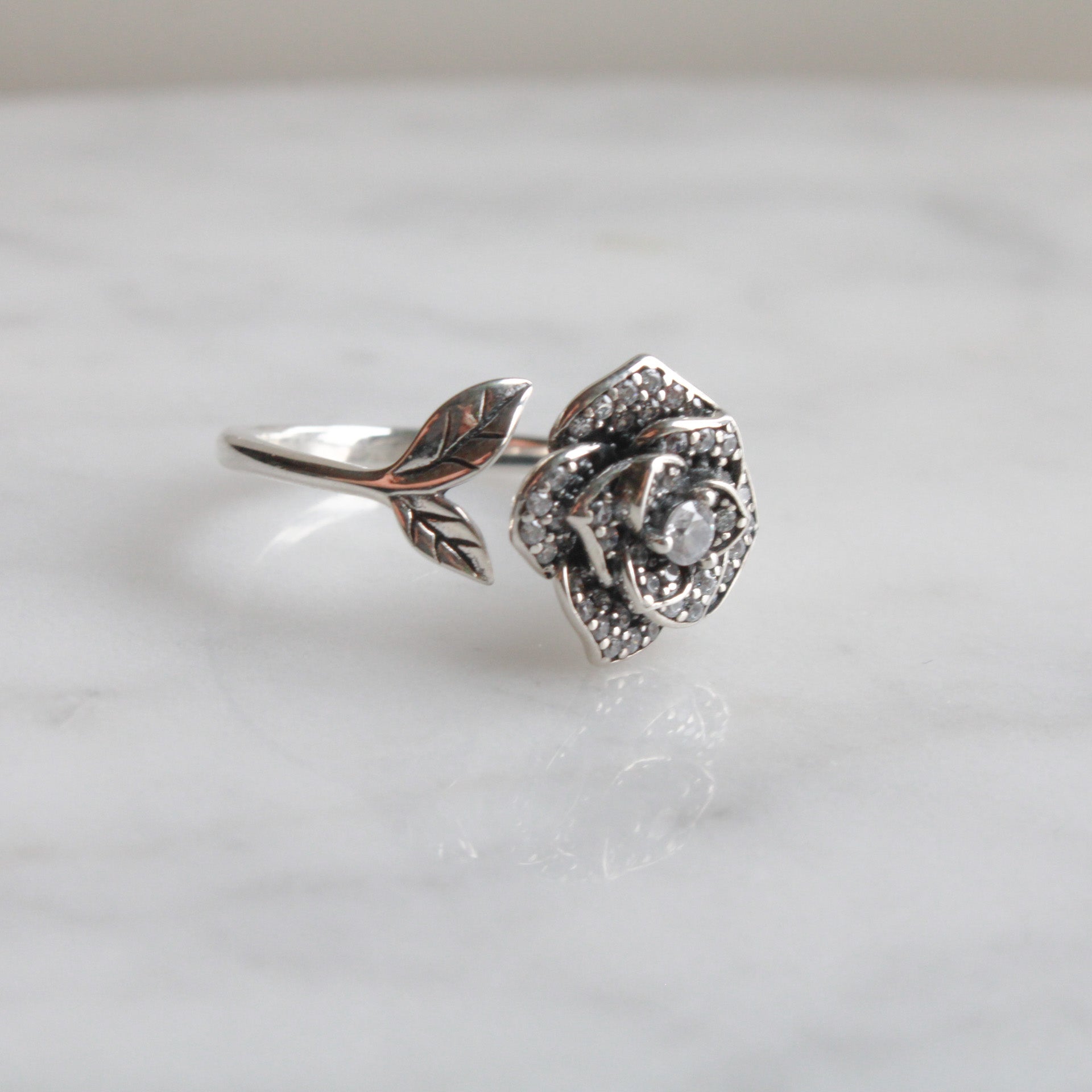 Anello regolabile in Argento 925 placcato Platino con rosa pavé di zirconi.