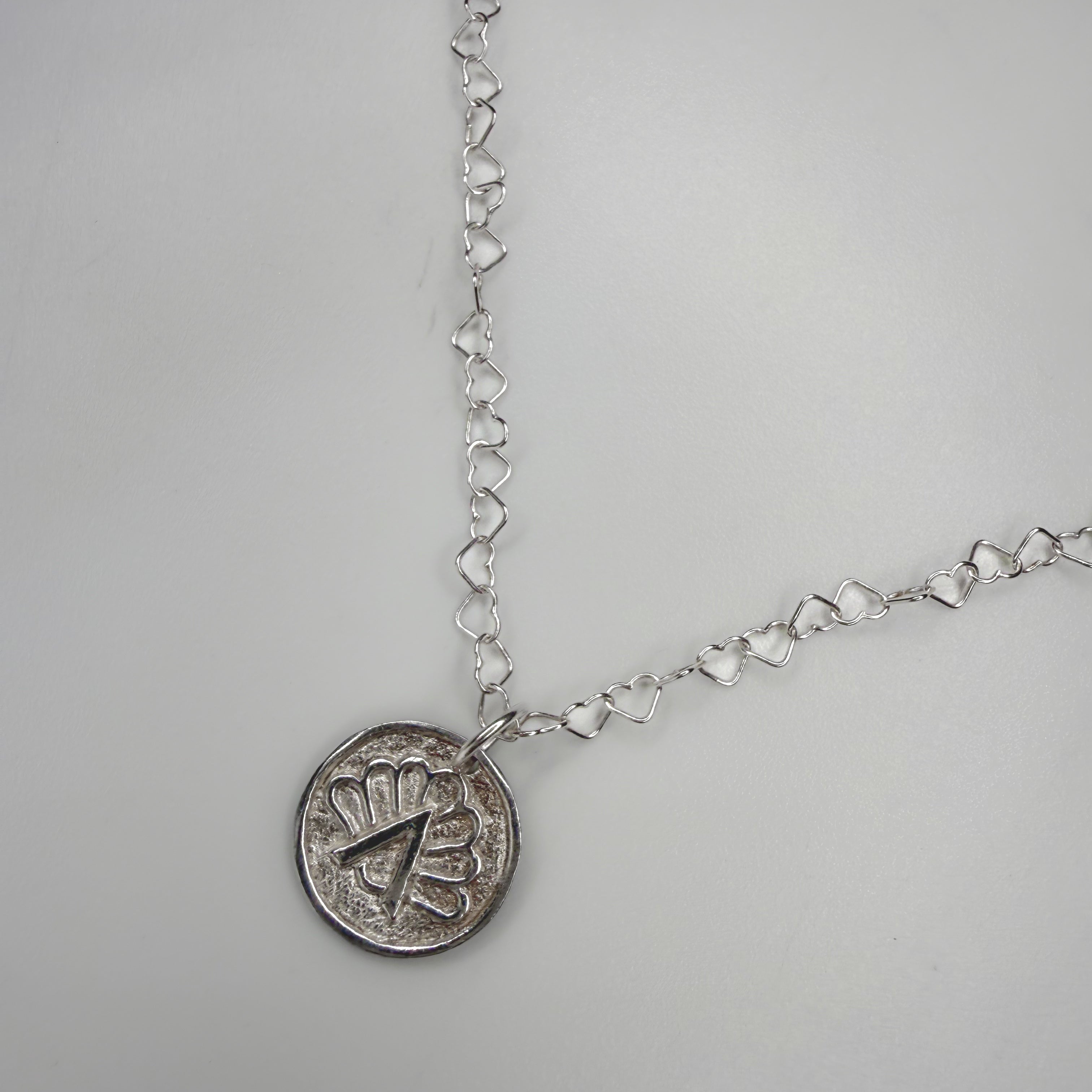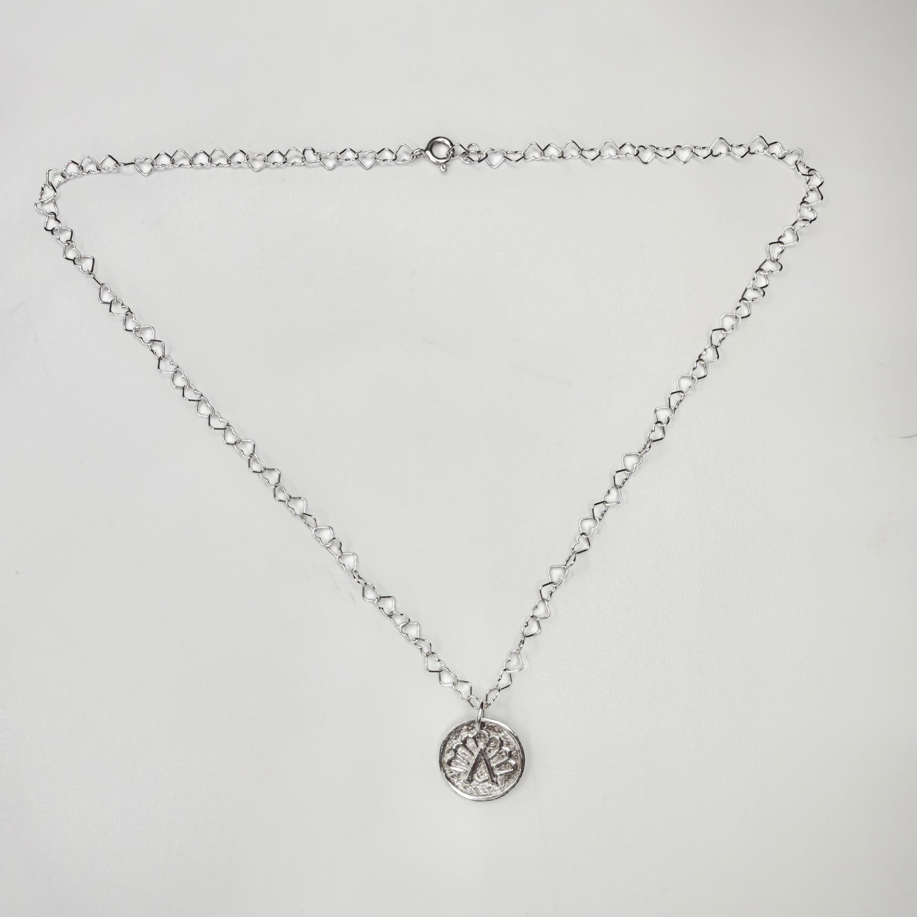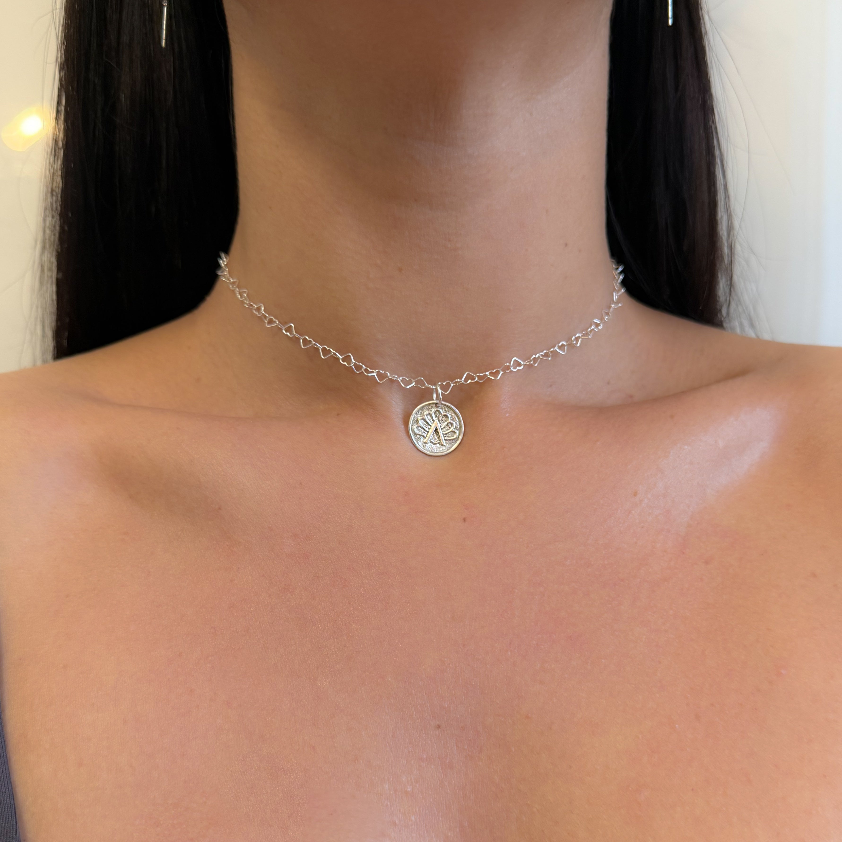 Choker S925 con catena a maglie a forma di cuore e medaglietta mobile con logo.