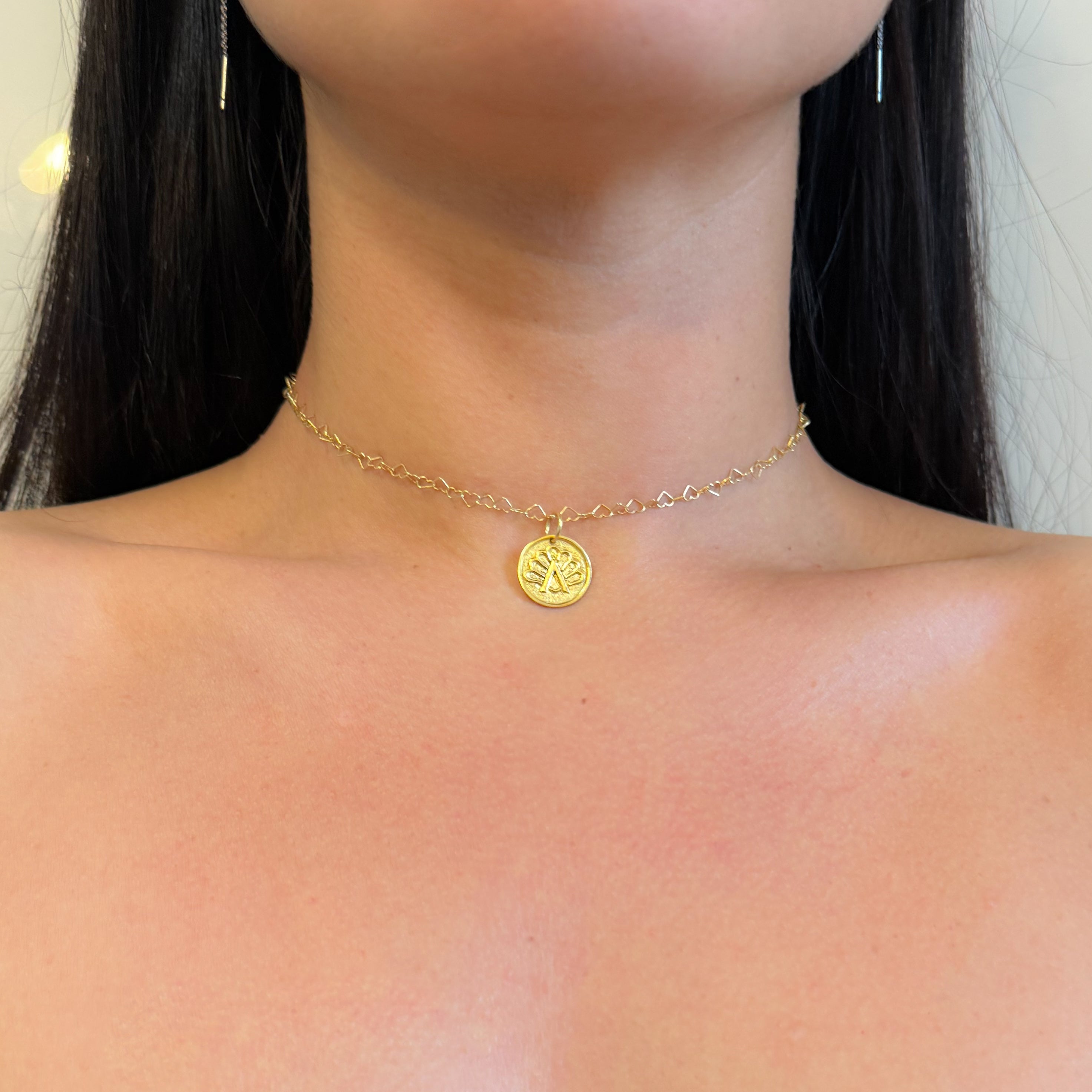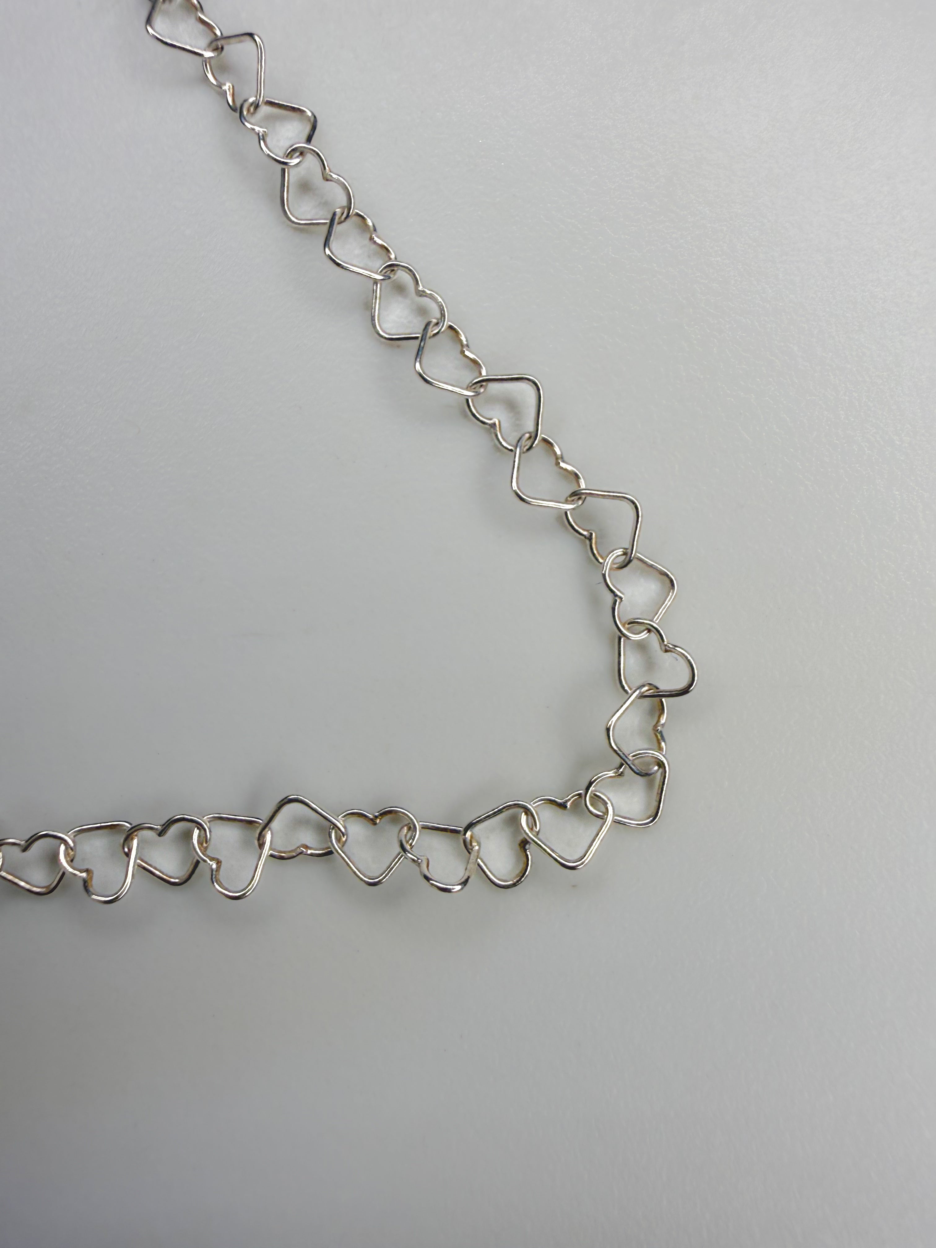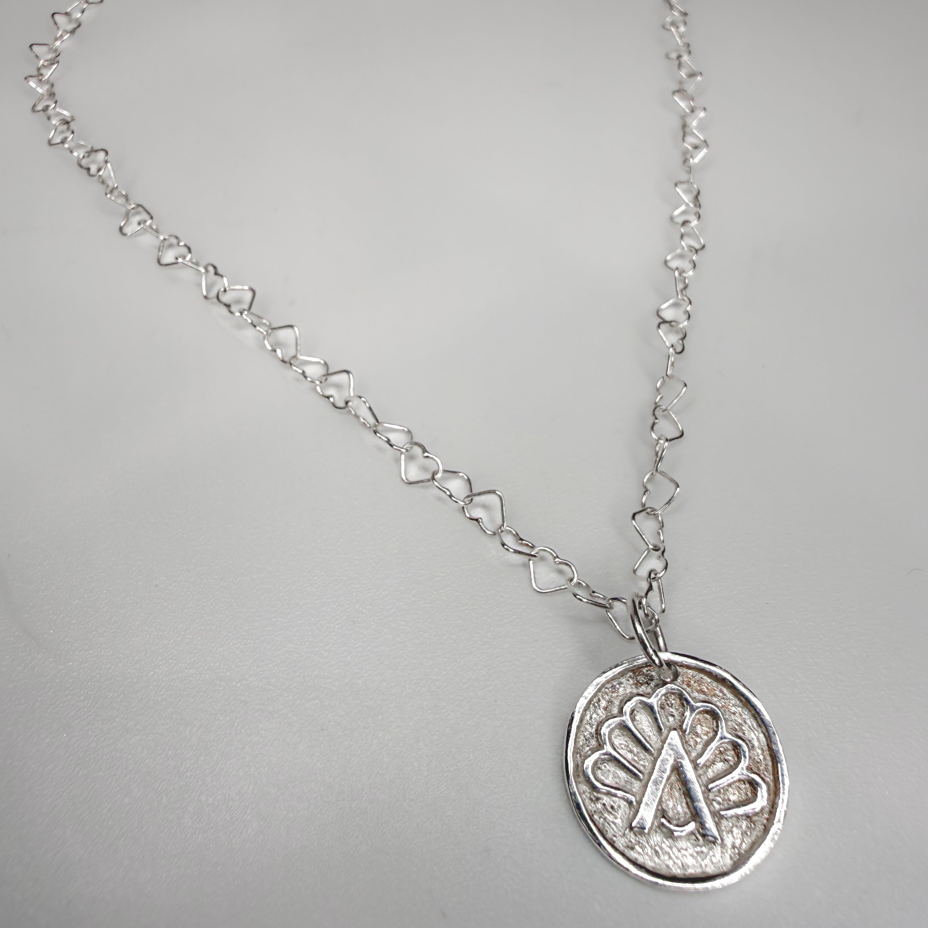 Choker S925 con catena a maglie a forma di cuore e medaglietta mobile con logo.