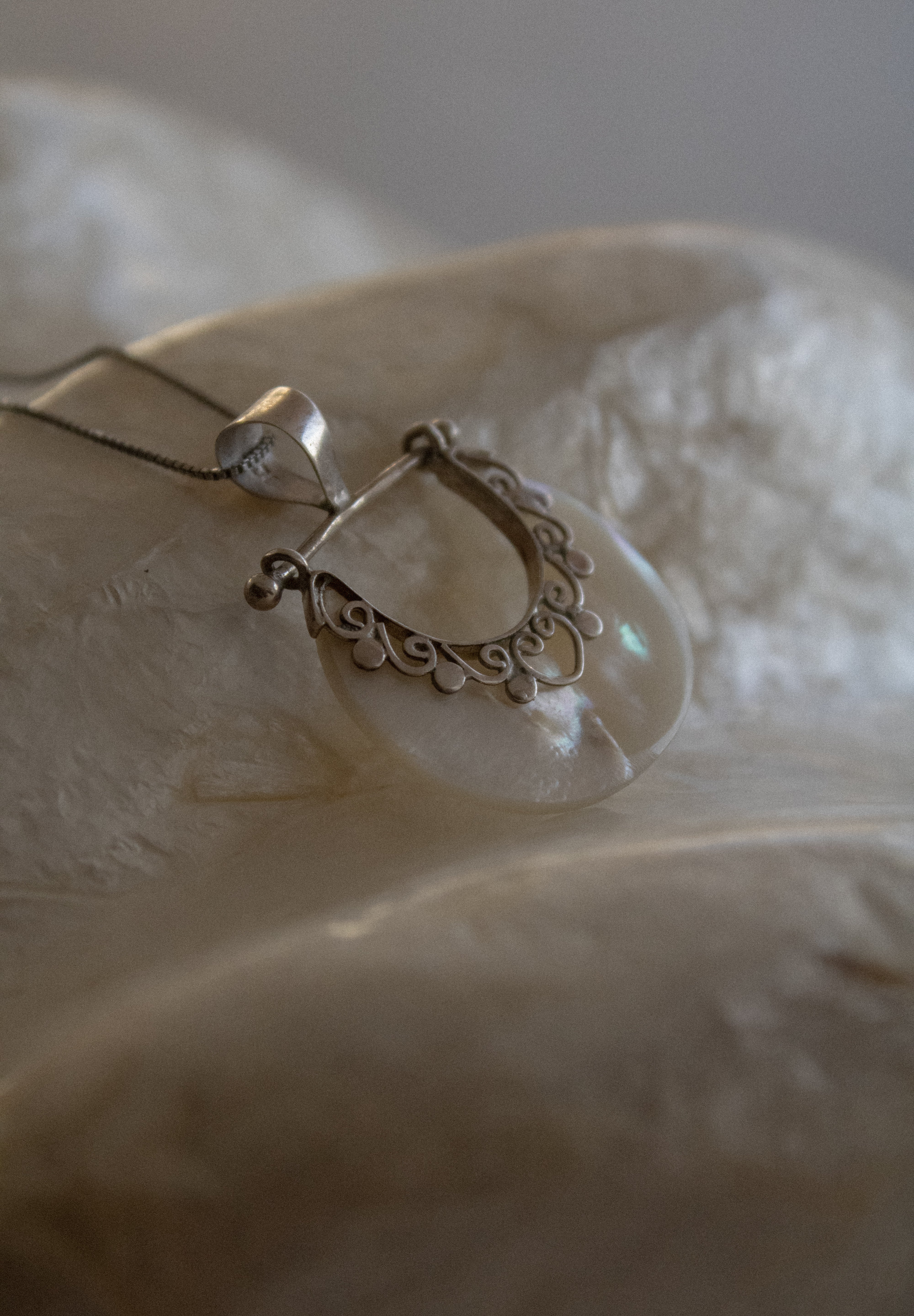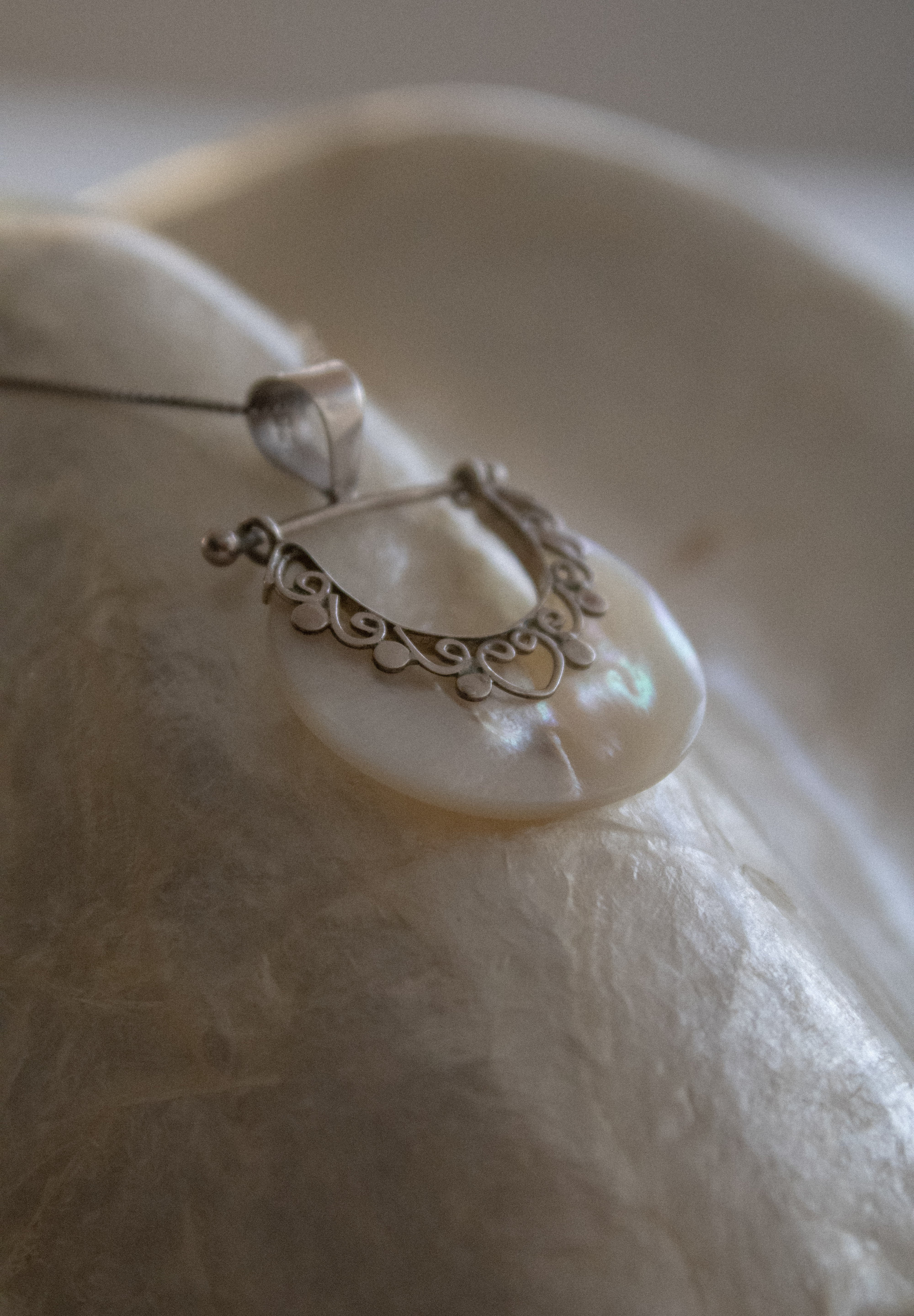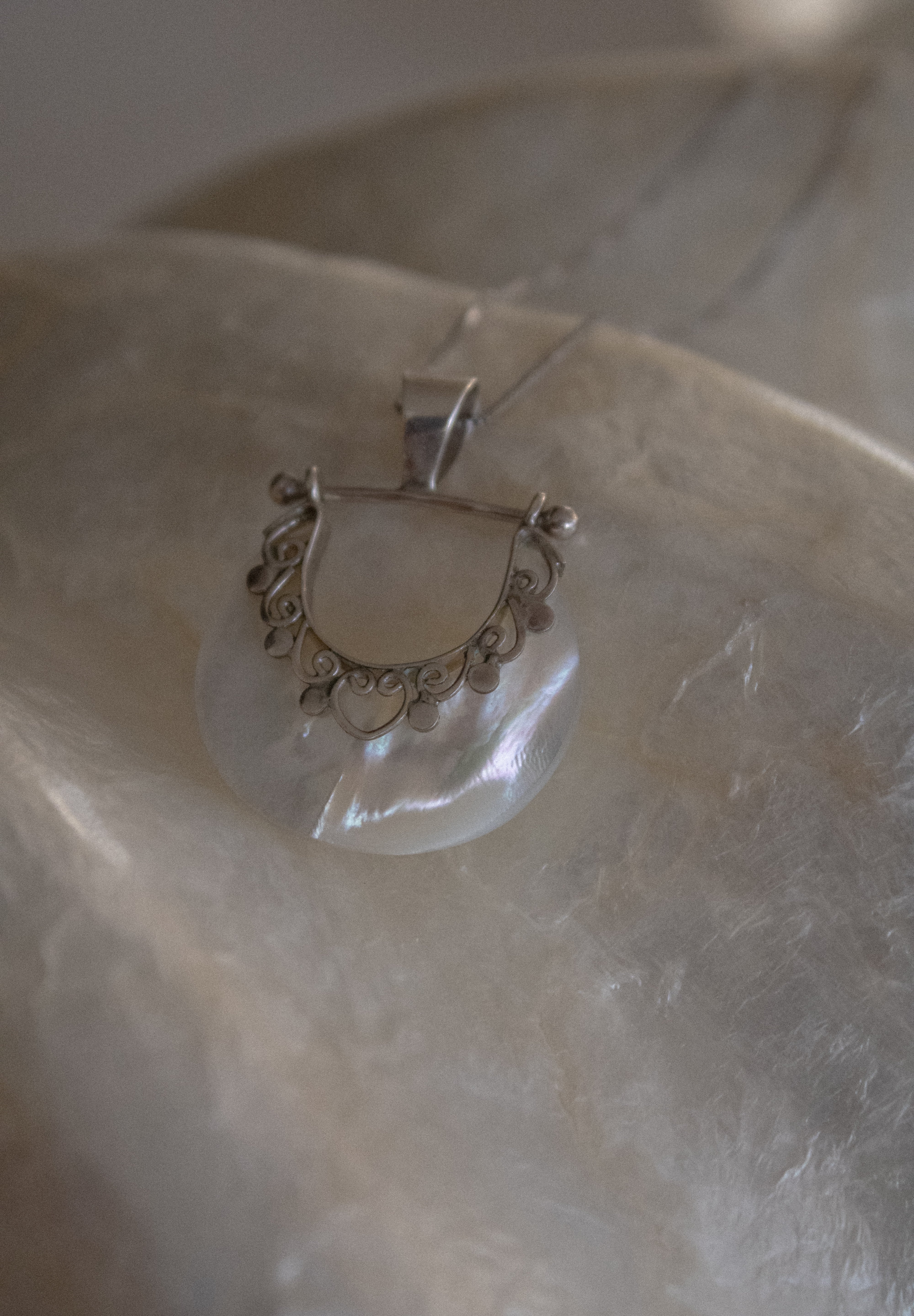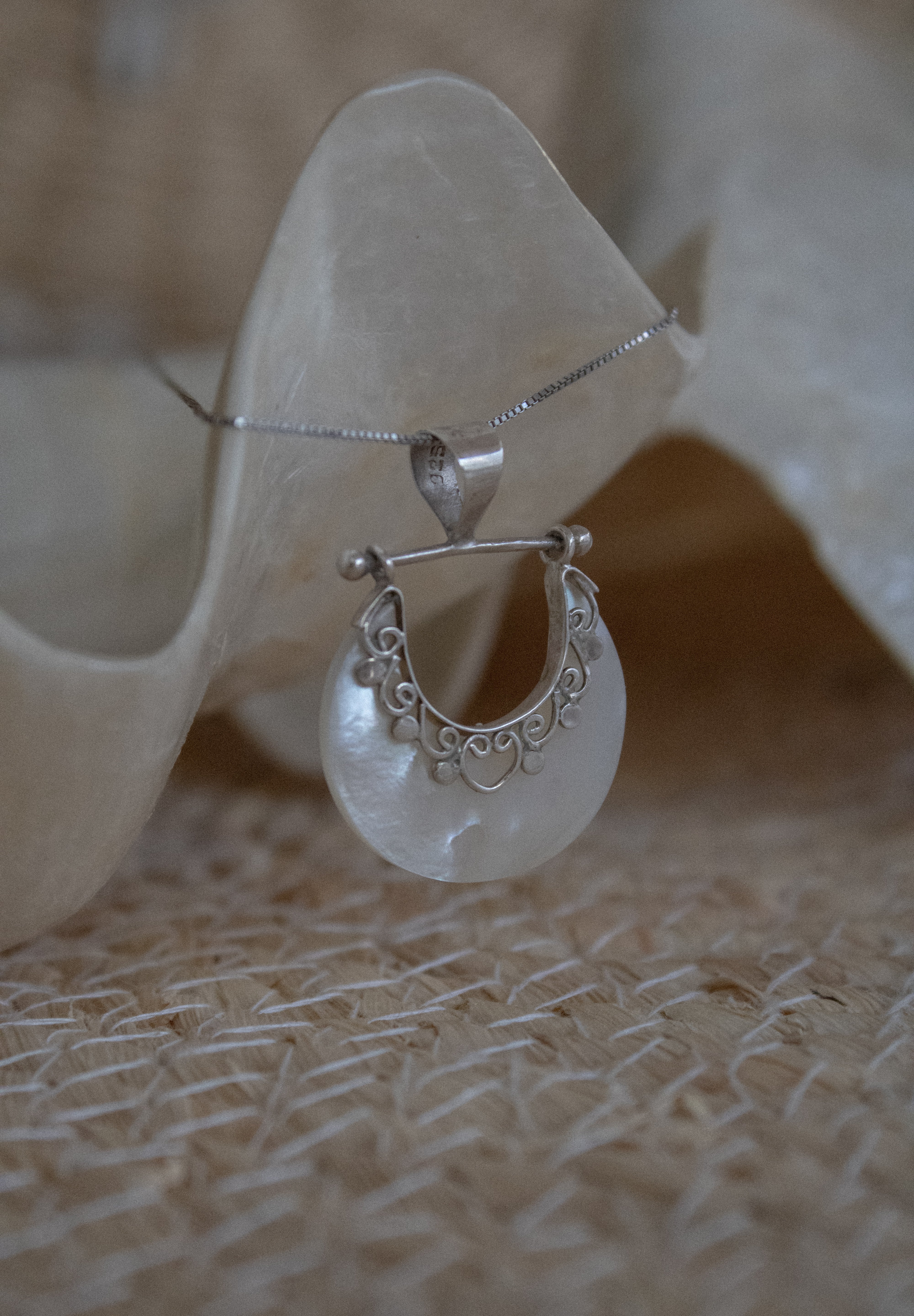 Ogni pezzo è un tributo all'armonia tra l'uomo e la natura, alla purezza del bianco che definisce il paesaggio e alla brillantezza della madreperla che cattura la magia del mare al tramonto.