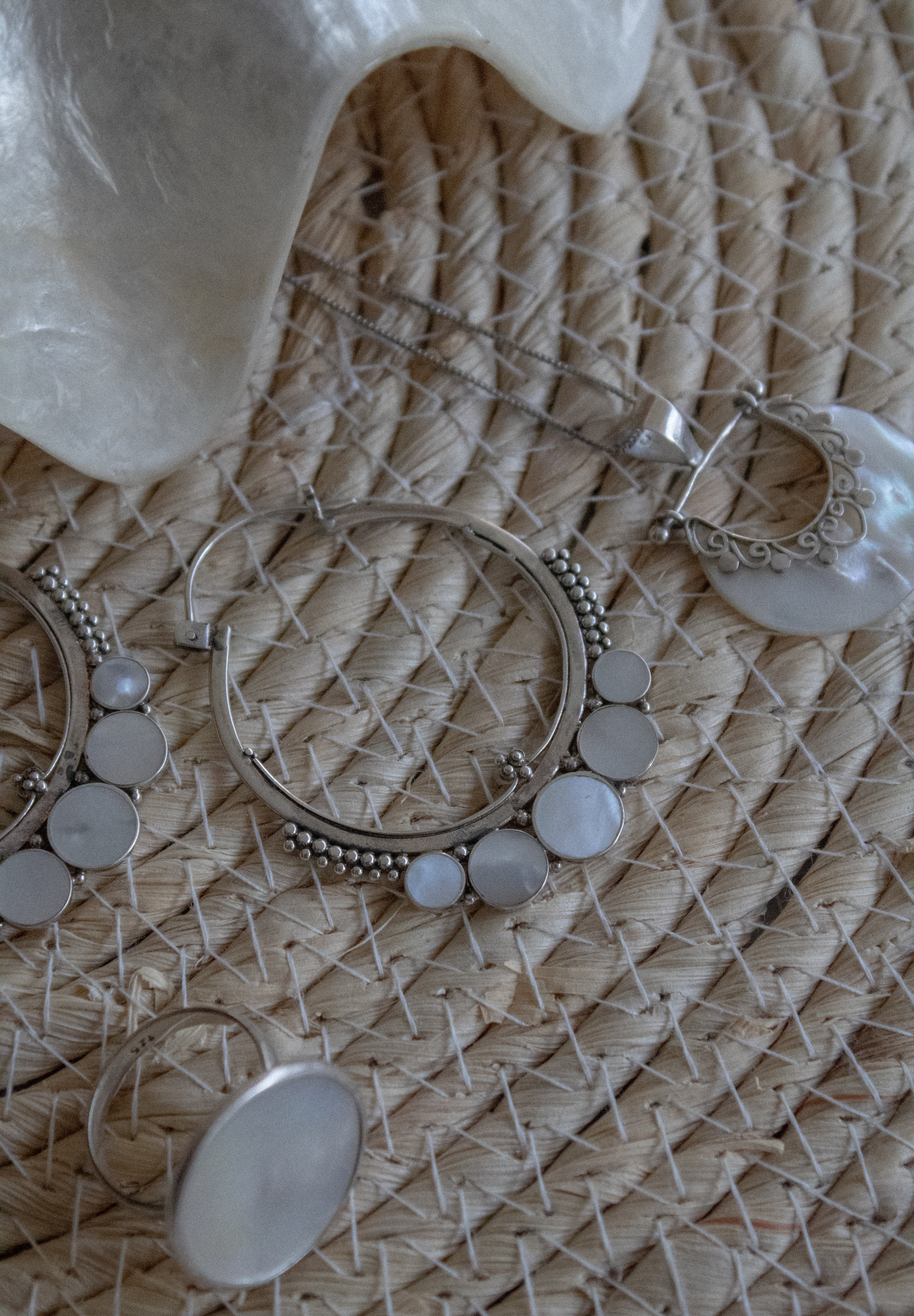 Gioielli regolabili fatti a mano in Argento 925 con madreperla bianca.