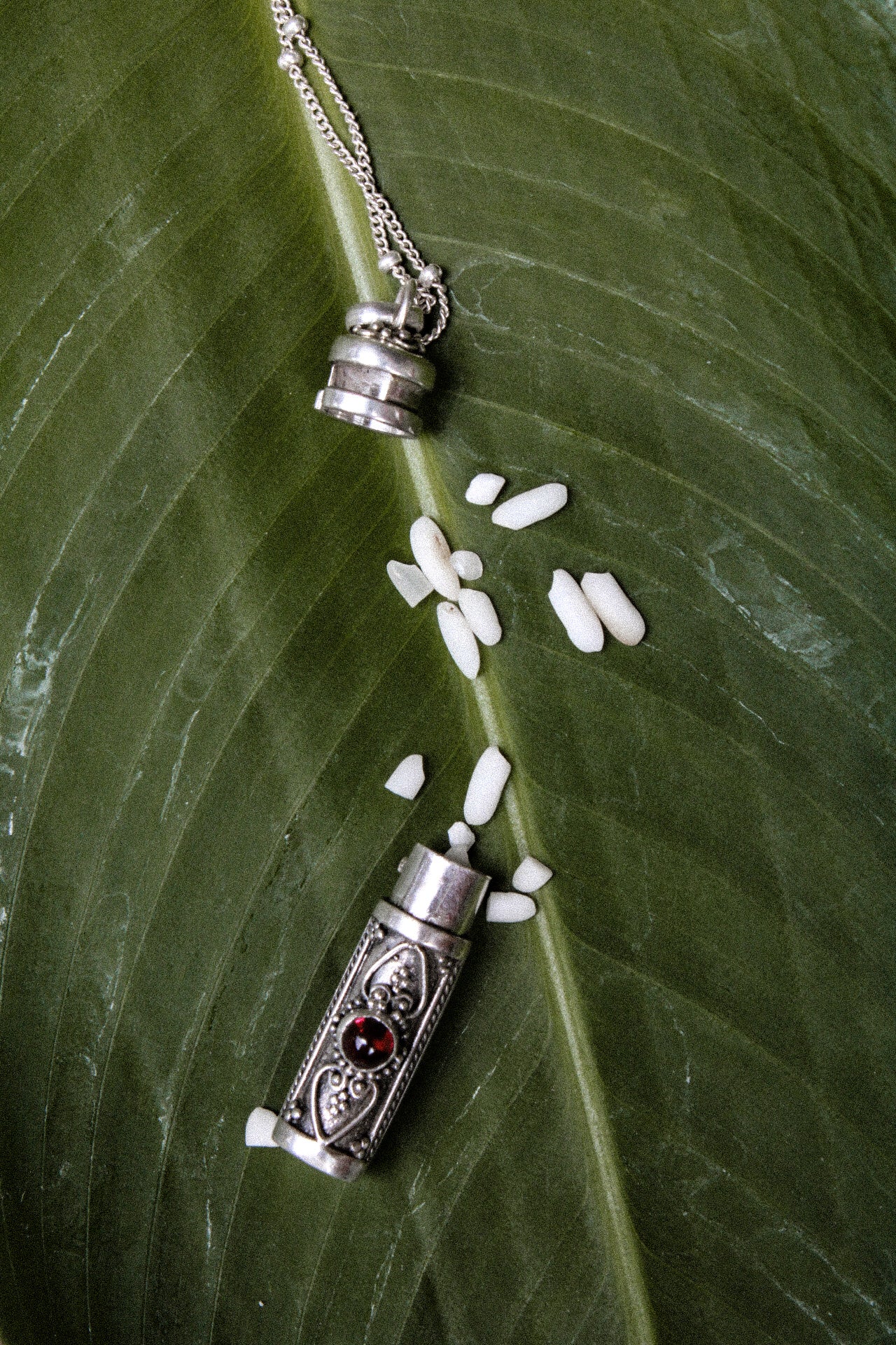 All'interno del ciondolo troverete infatti alcuni chicchi di riso presi direttamente dalle risaie di Jatiluwih, patrimonio dell'Unesco, che verranno mescolati con alcune gocce di olio essenziale al frangipane, utilizzato dalle donne balinesi.