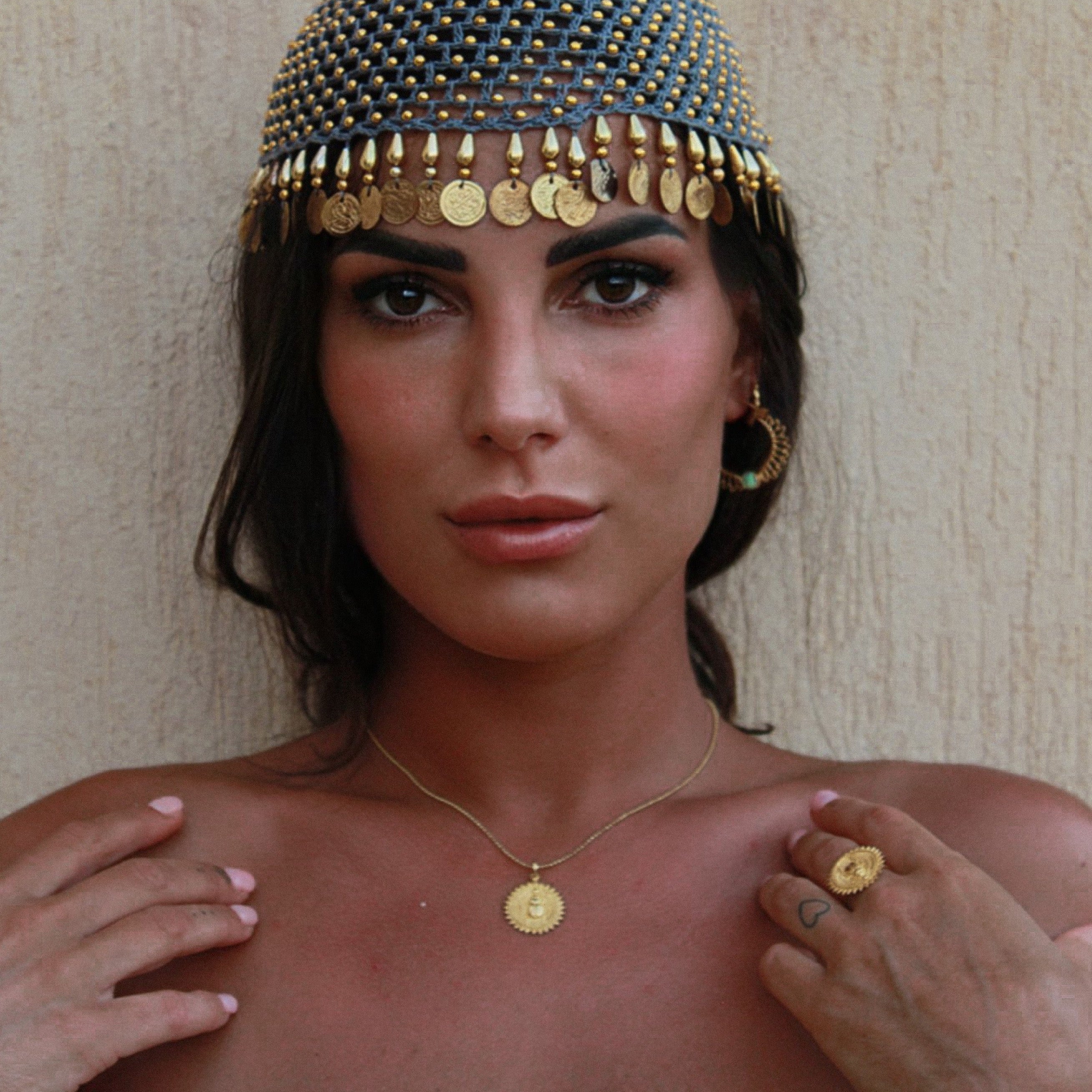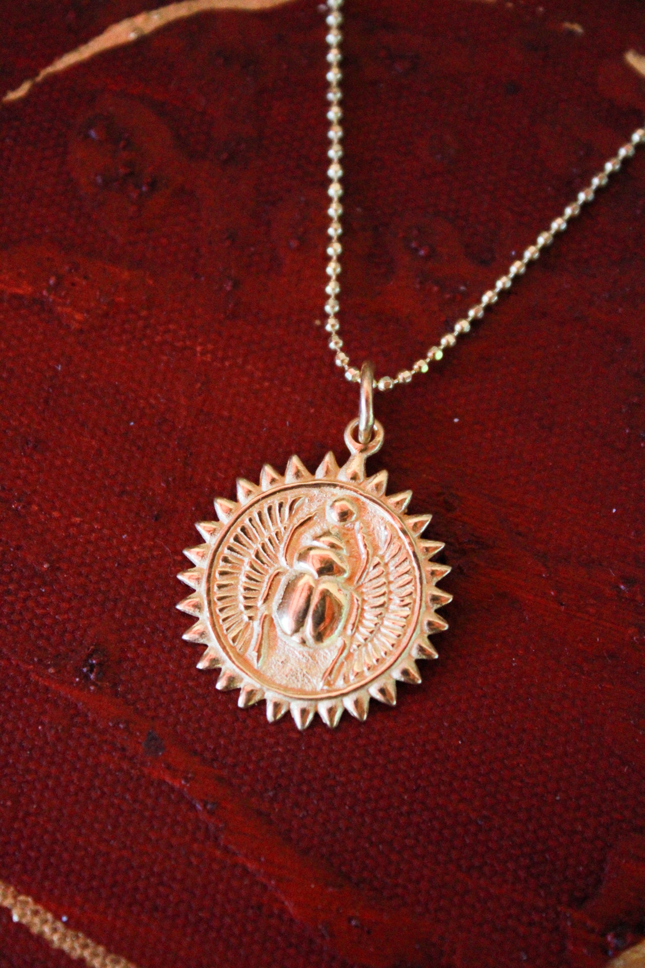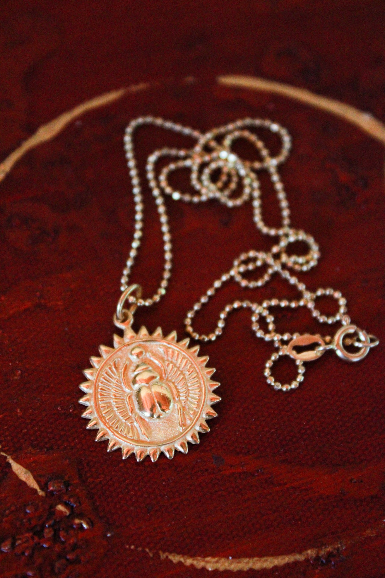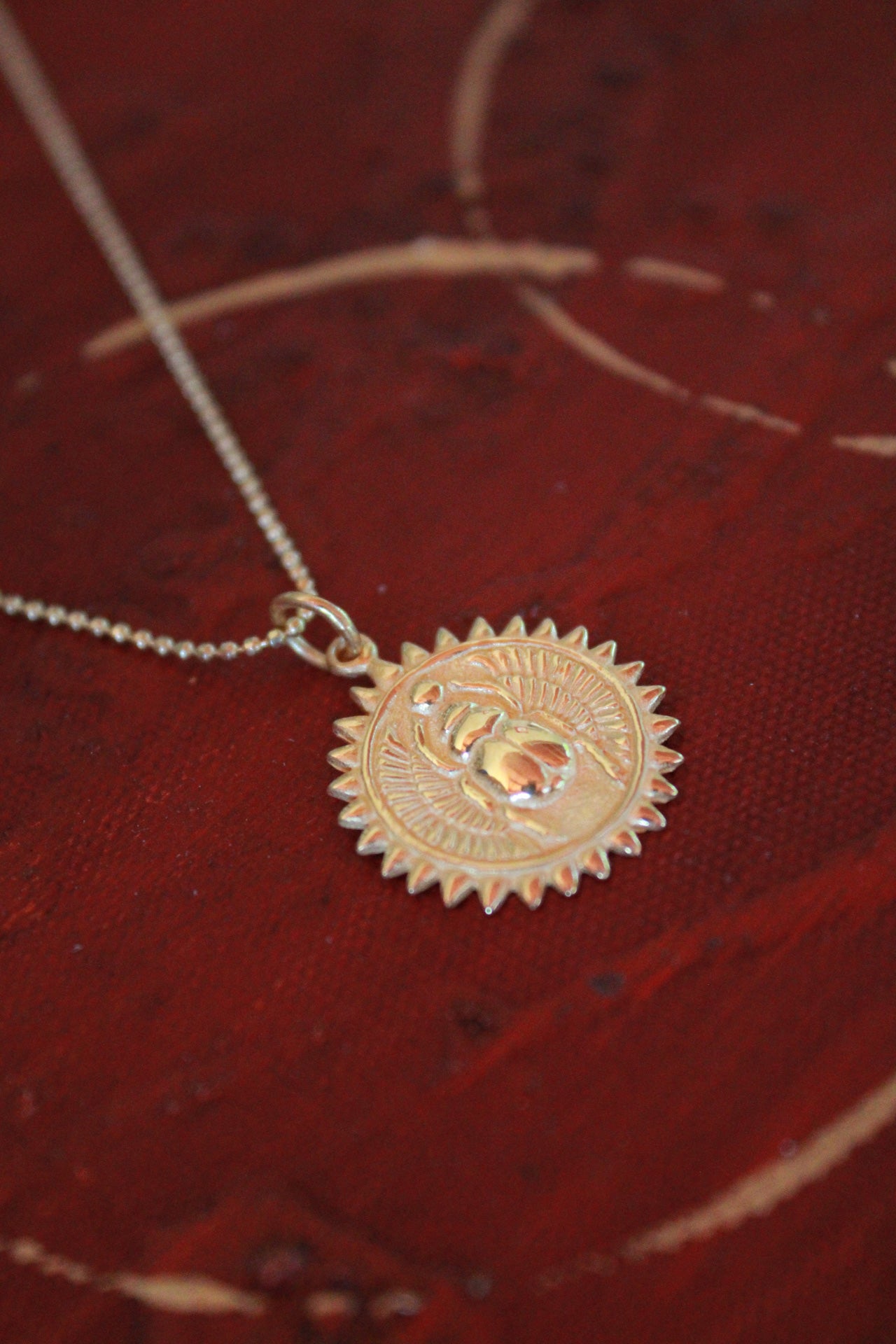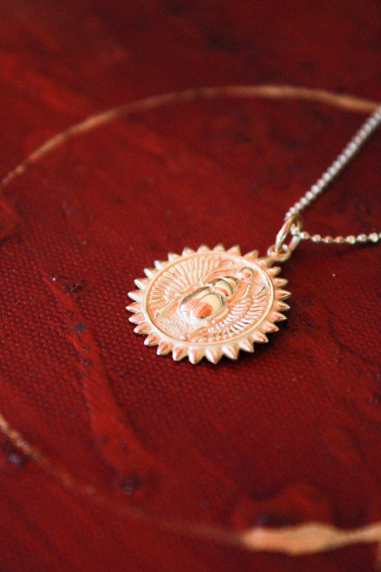 Collana in argento 925 placcata Oro 18k con medaglietta egiziana raffigurante uno scarabeo sacro.