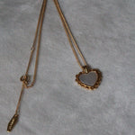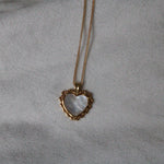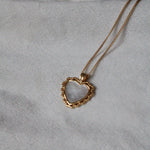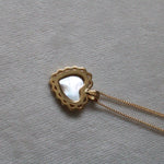 Collana in Argento 925 placcata Oro 18k con ciondolo a forma di cuore in madreperla con cornice in stile barocco.