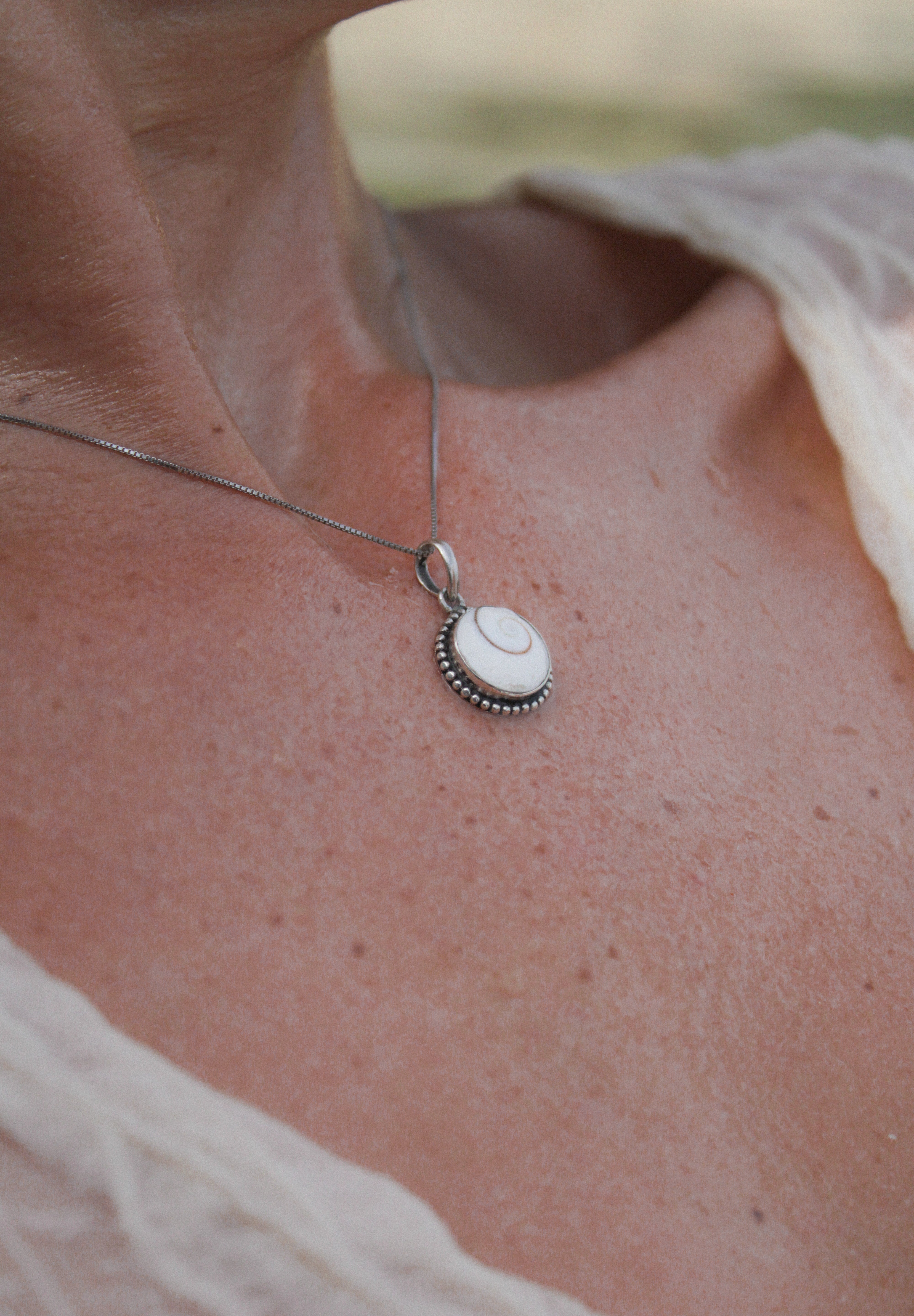 Ecco la storia di come nasce questa conchiglia: si tratta dell'opercolo calcareo di una specie marina, l'Astrae rugosa, che vive sui fondali rocciosi dove si nutre di alghe.